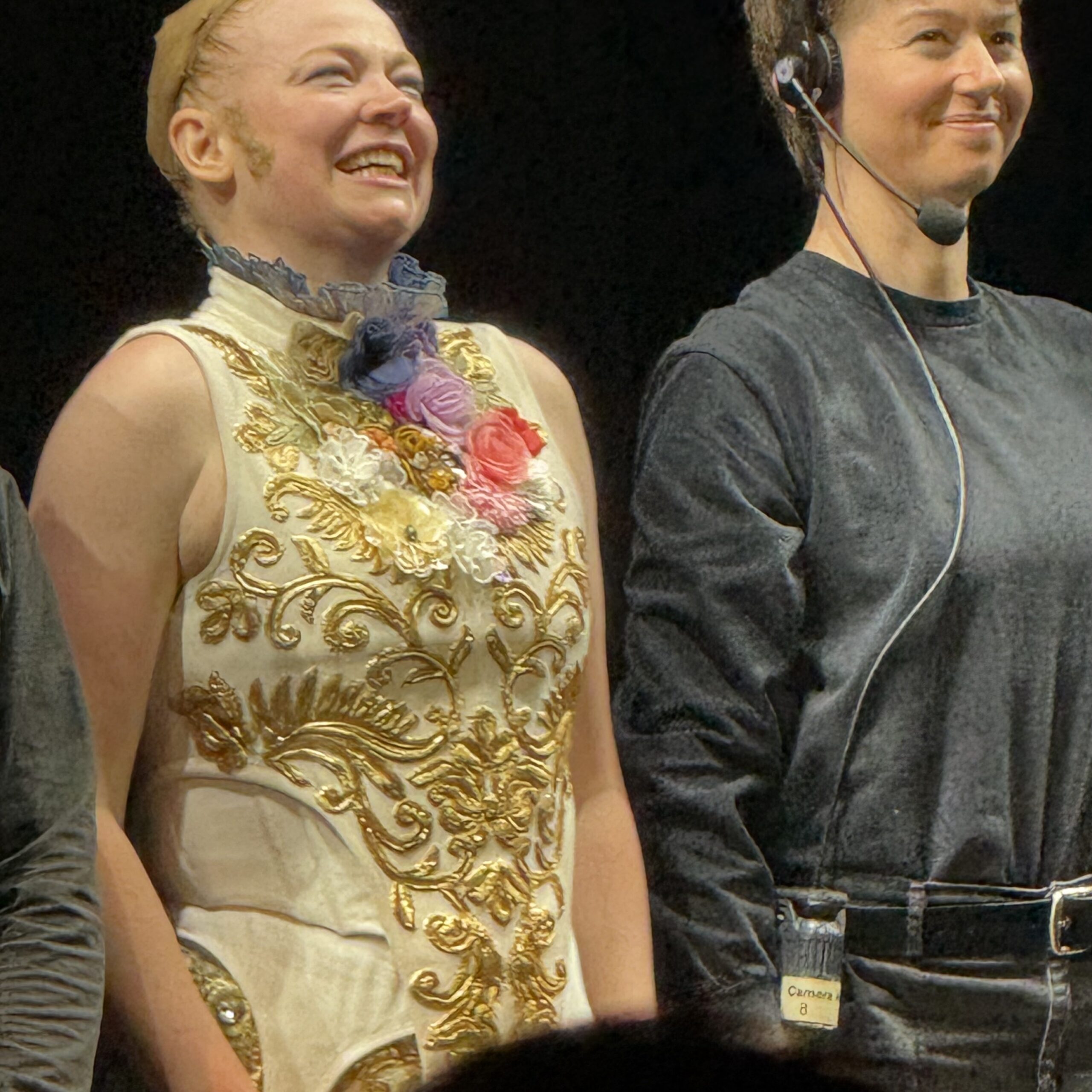 One moment she’s a cruel dandy dripping with irony, the next a fragile ingénue unraveling. She changes on stage, often mid-sentence, mid-light-cue, mid-air.
