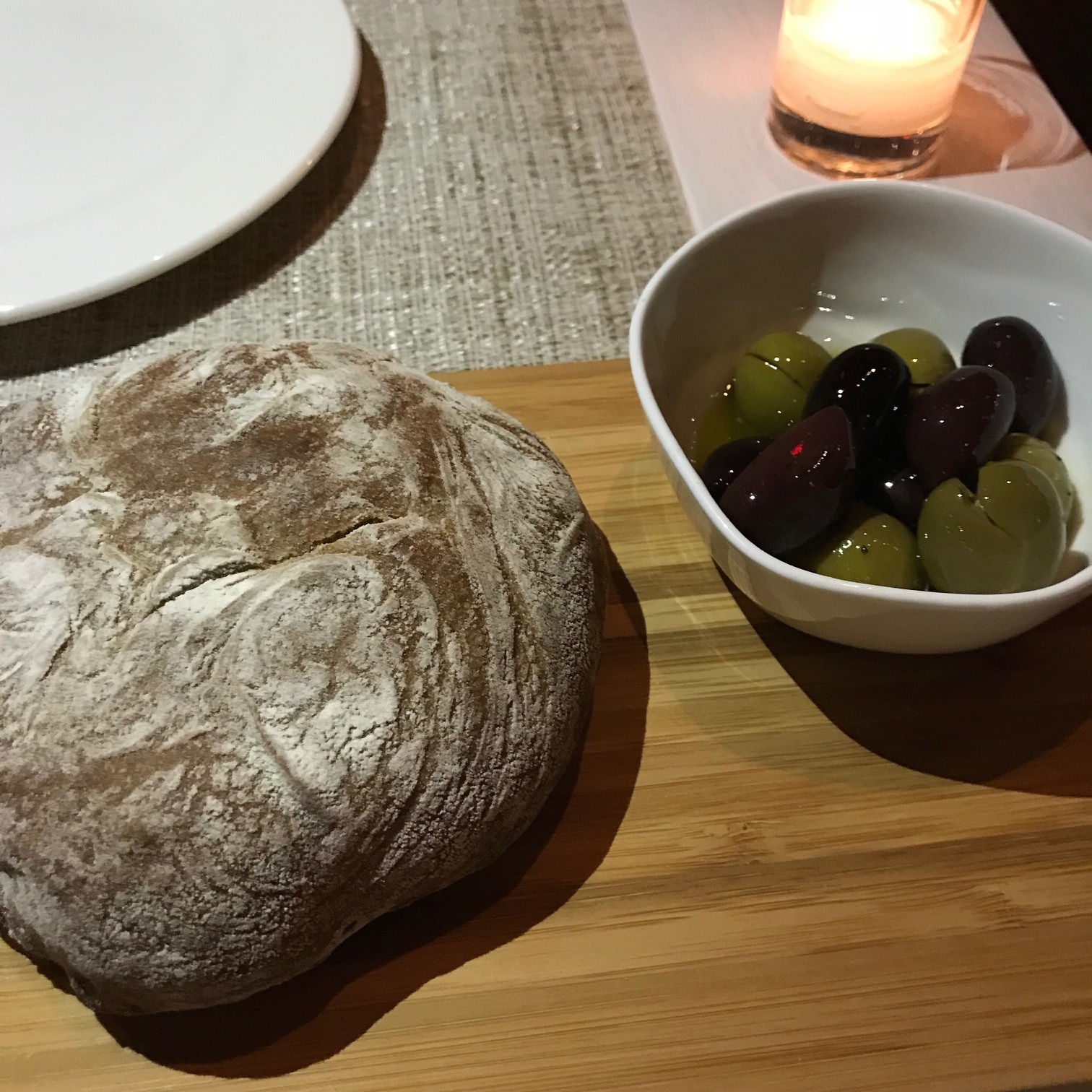 The experienced staff member brought over a delicious homemade bread that was not sliced, purportedly so that we would use our hands to break break with friends and family.