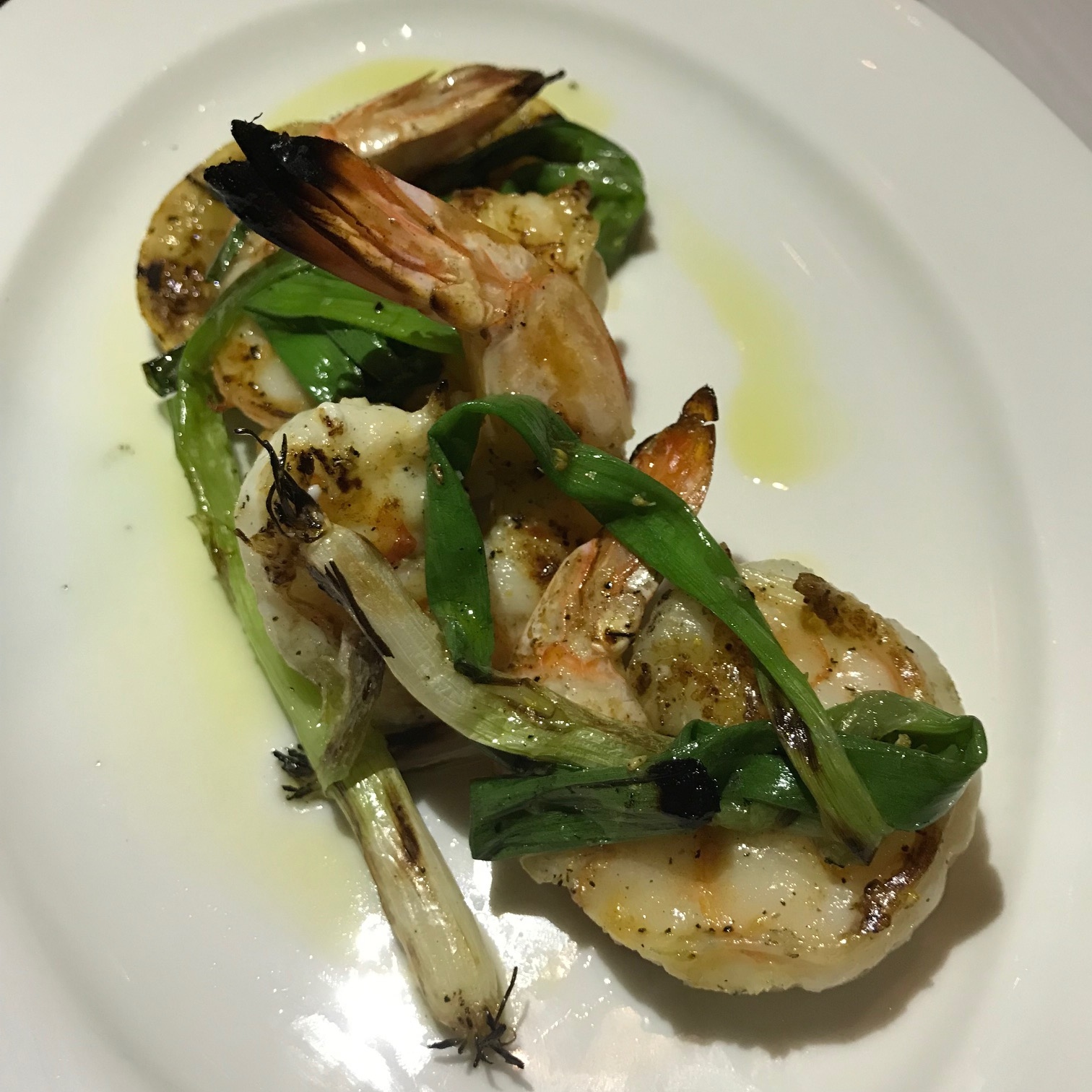 The simply grilled jumbo Shrimp with lemon and olive oil were sweet and meaty adorned with sautéed fennel ($18).