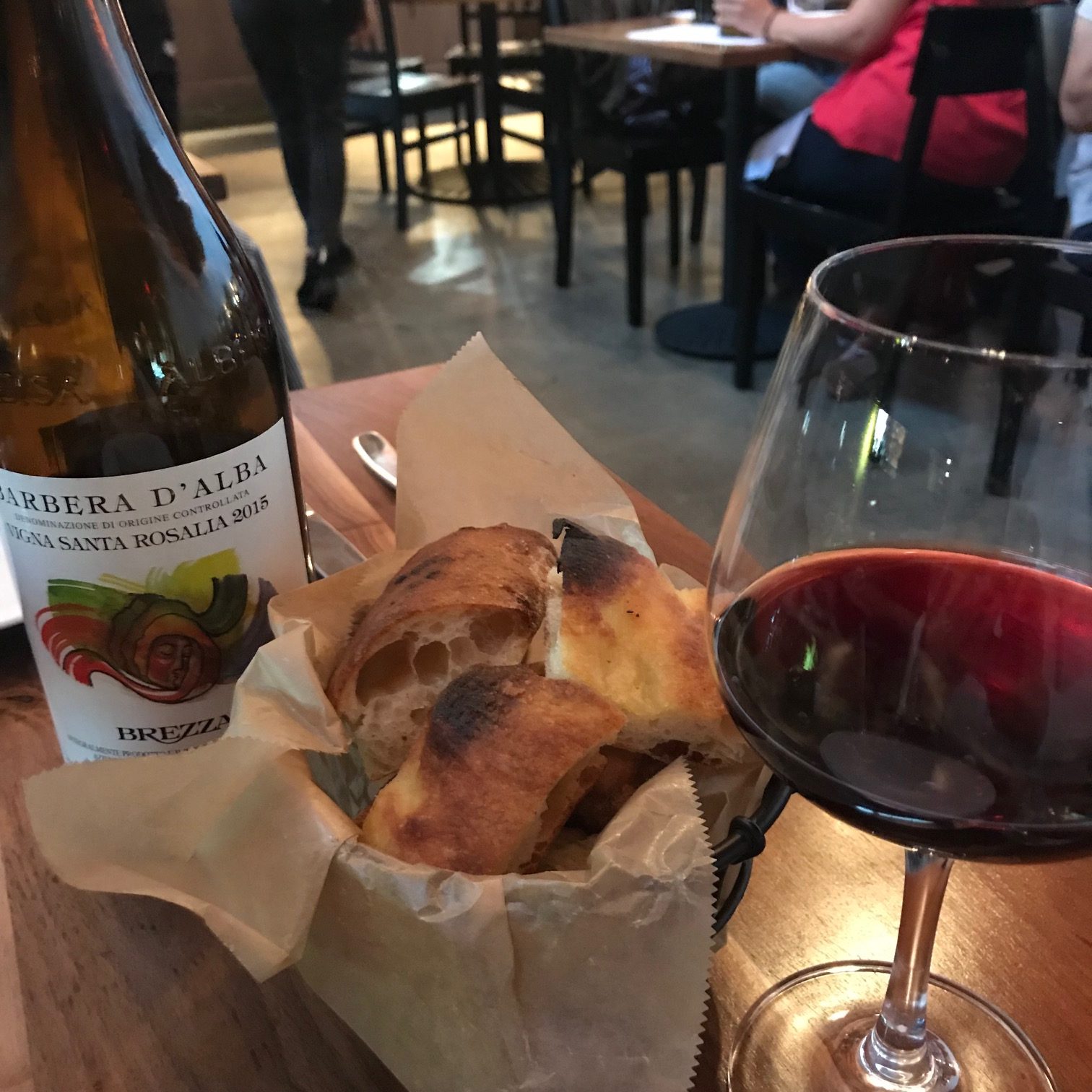 We ordered a well priced bottle of delicious fruit forward Barbera Brezza which complimented the meal ($45).