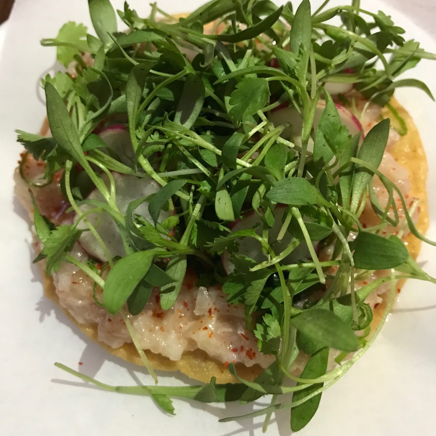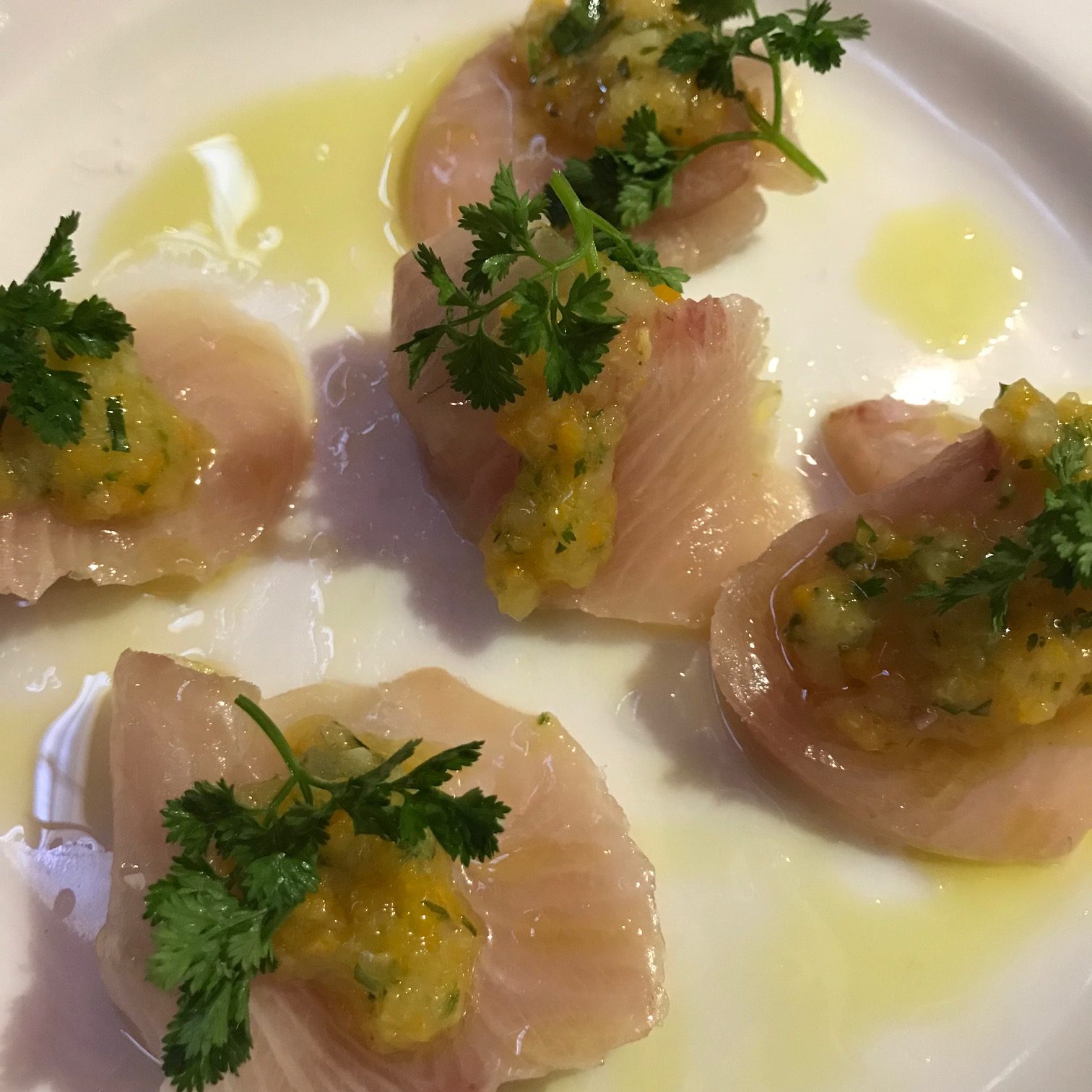 Next up, the thickly sliced delicate and delicious Royal Hamachi Crudo with kumquat Prosecco relish ($16).