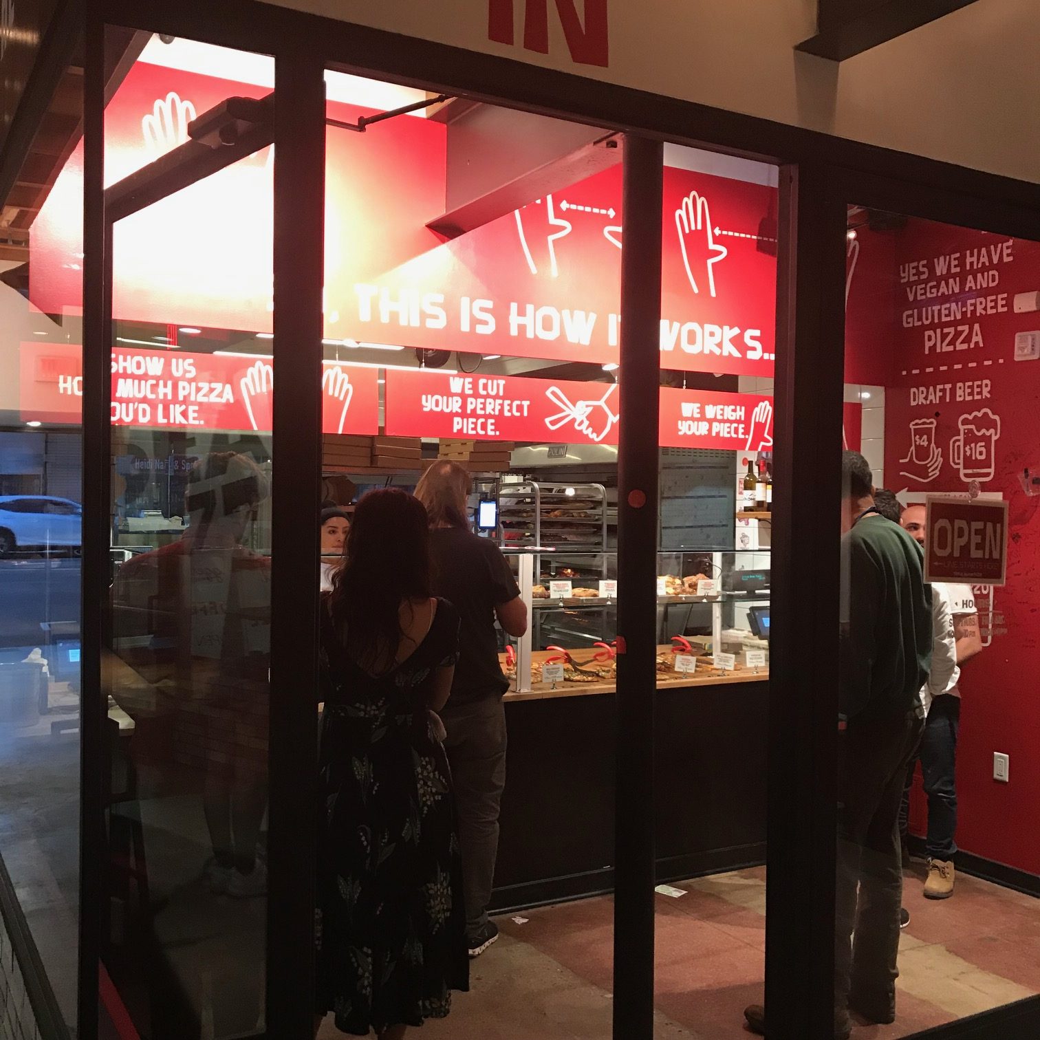 As we entered the painted mini mall there was a coffee bar located on the right and Triple Beam Pizza on the left.