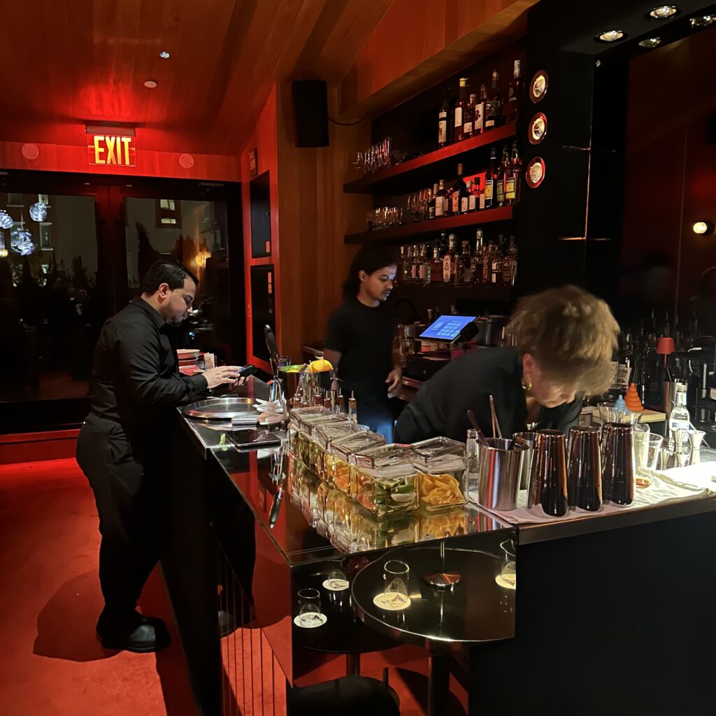 Upstairs there is Pearl Box, an intimate cocktail 70’s style lounge that features caviar along with small plates.
