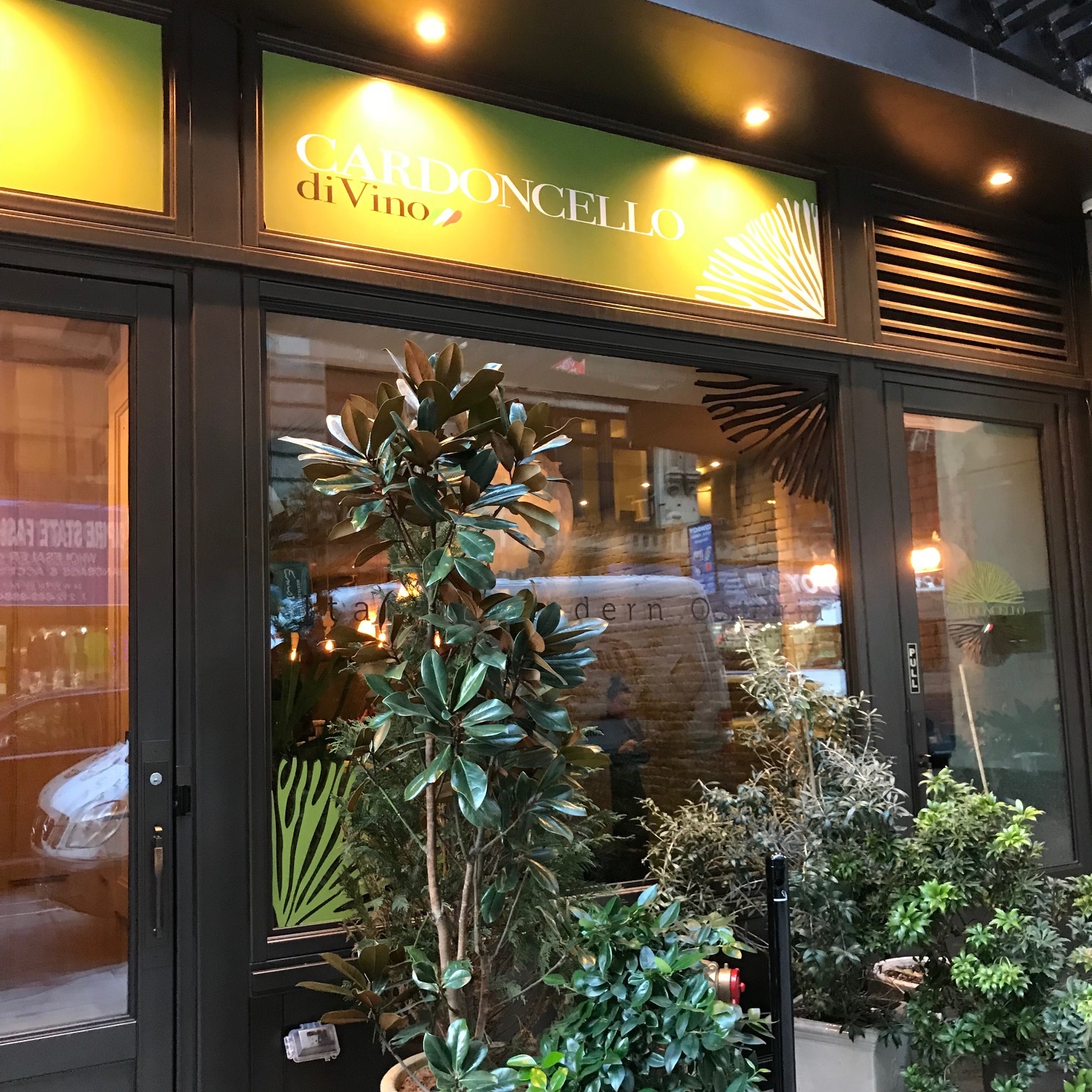 Cardoncello diVino 43 West 27th Street New York City. Open for lunch Monday-Friday 12-3pm. Dinner Monday-Saturday 4:30-10:30pm. Closed Sunday. Reservations on OpenTable.com.