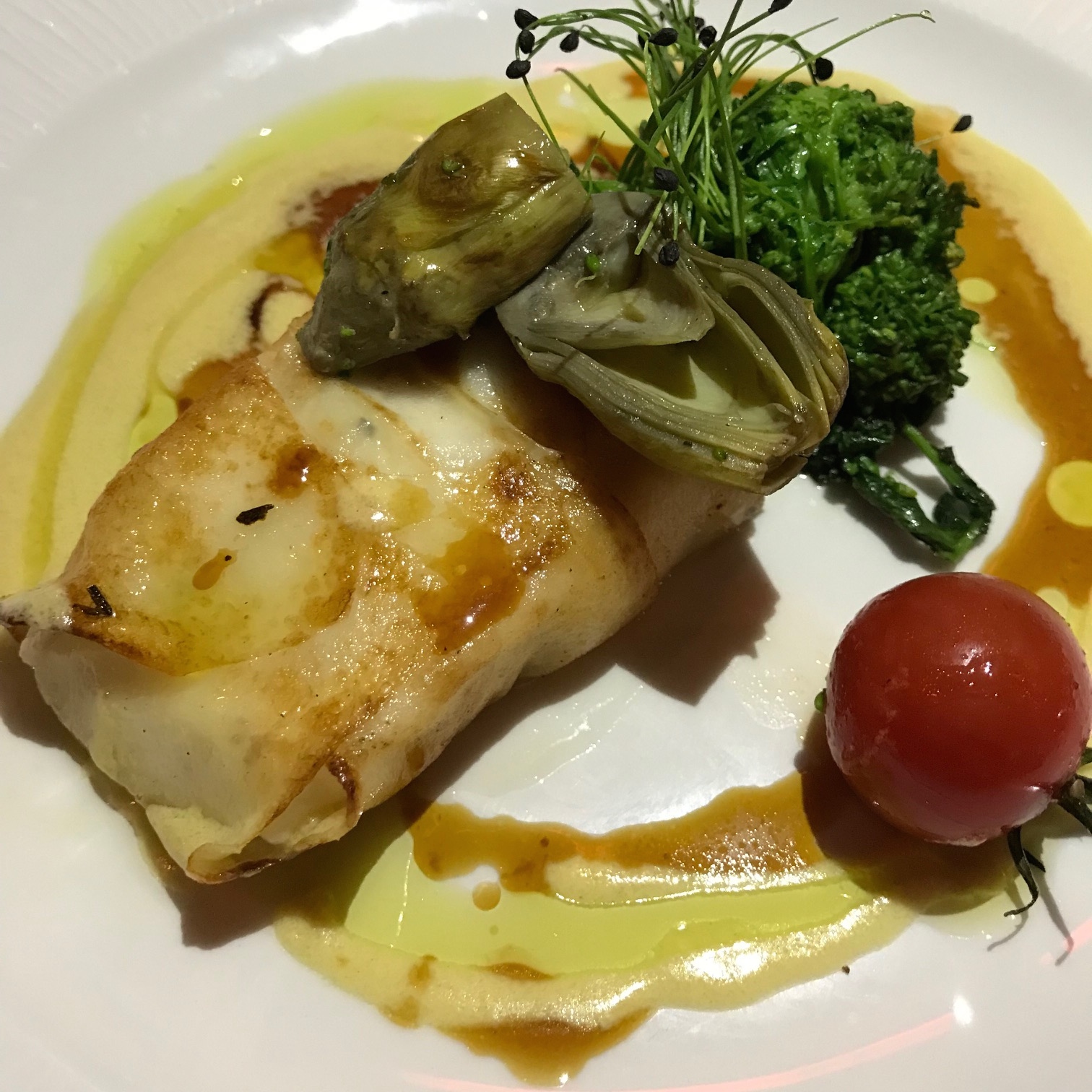 The featured fish was the best Halibut I have ever eaten wrapped in a potato skin accompanied by broccoli rabe and artichoke ($35).