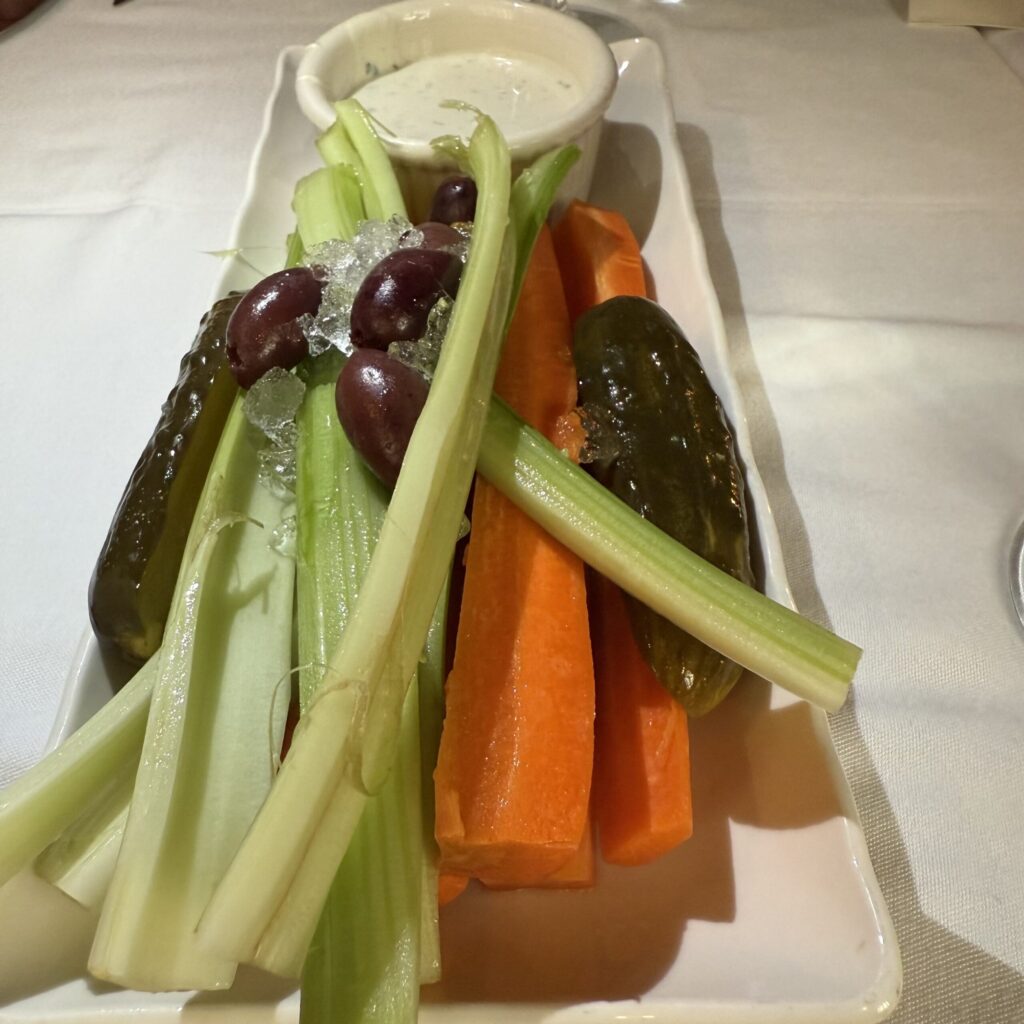 The crudite plate was chilled and fabulously free, aiding in quelling true hunger.