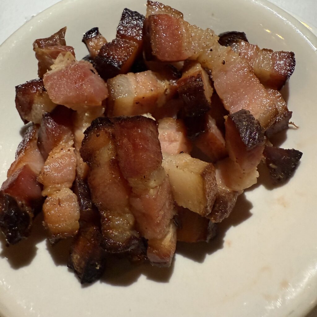 Sides? Oh, we did sides. A Wedge Salad…two heads of crisp iceberg lettuce with thick-cut bacon and tomatoes dressed with blue cheese because why nibble when you can chomp ($18).