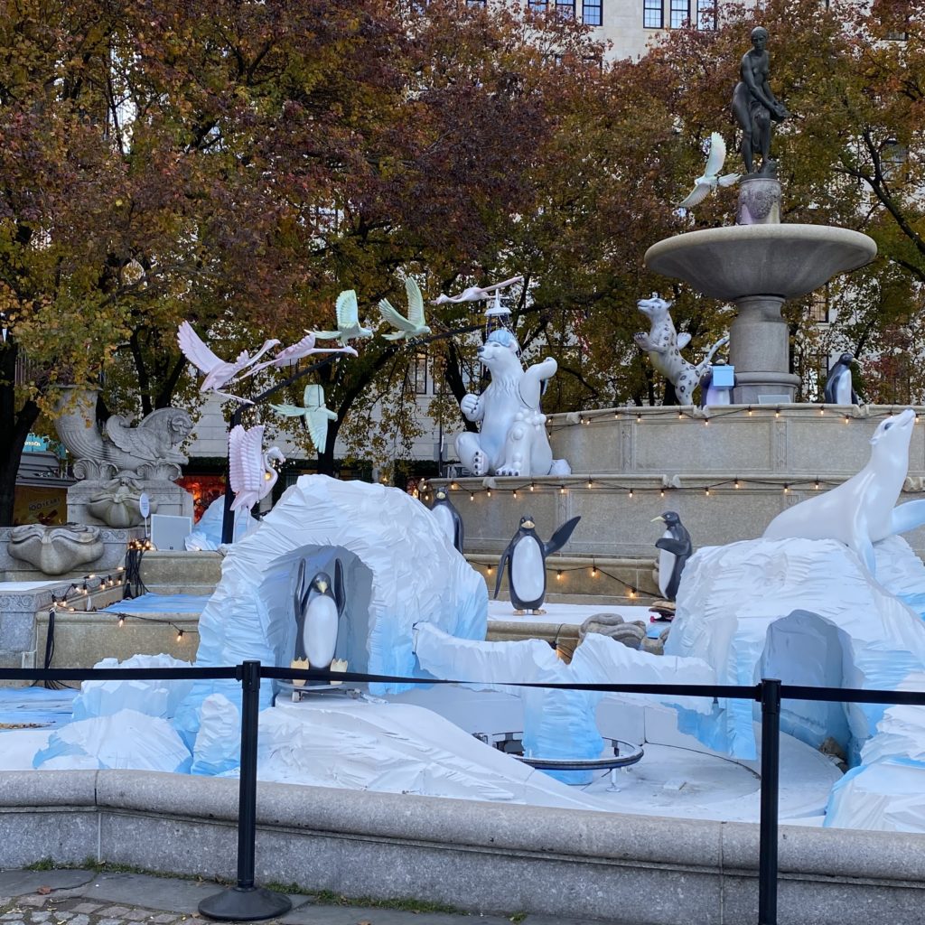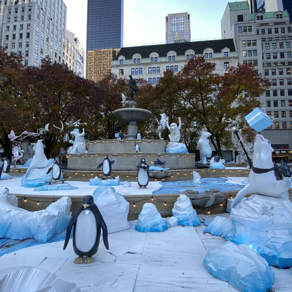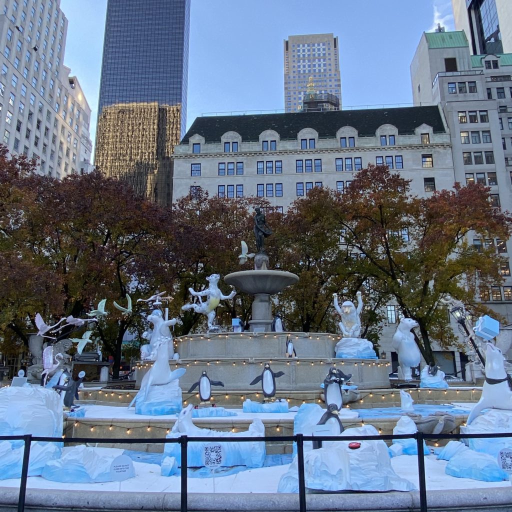 For the first time that I am aware of the Park across from the Plaza Hotel on 5th Avenue and 59th Street has an adorable animated winter display.