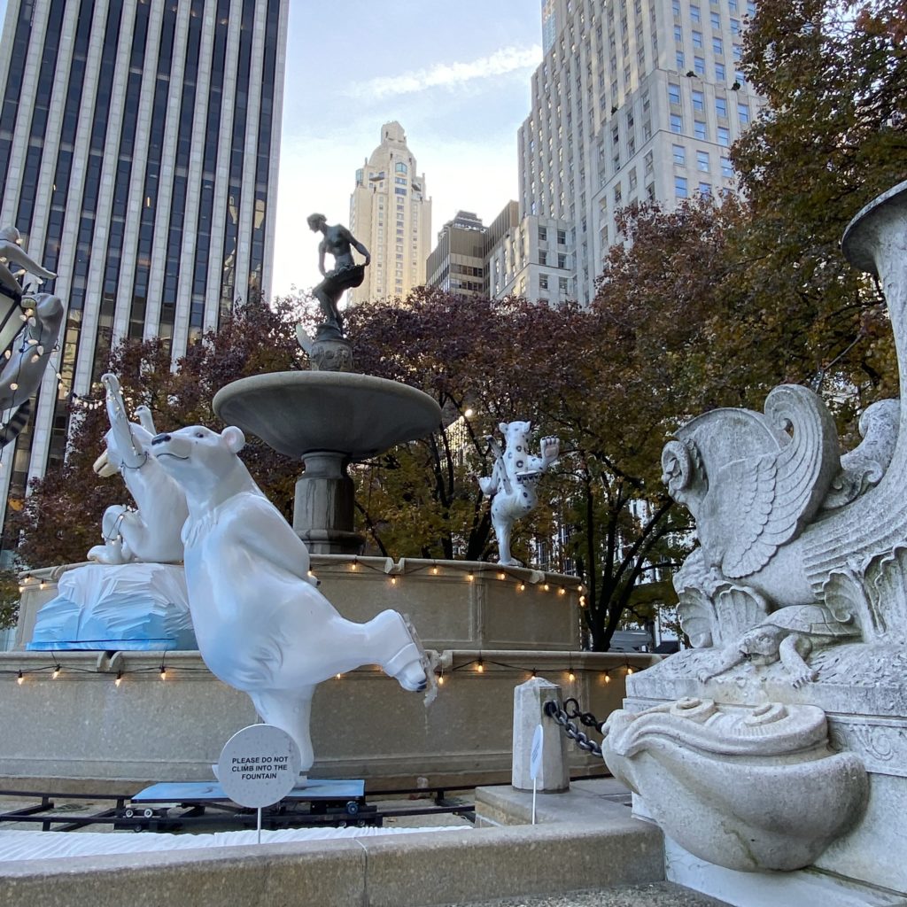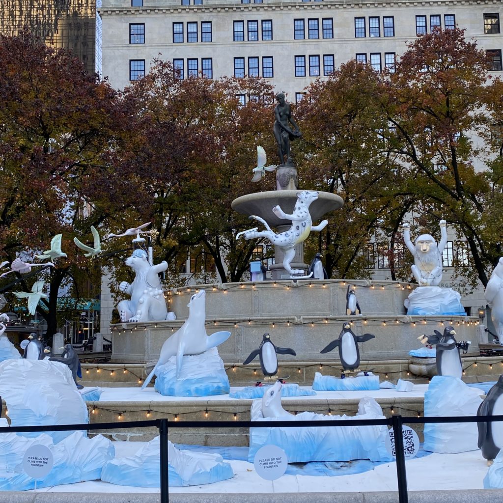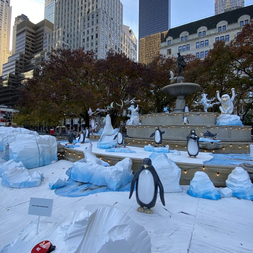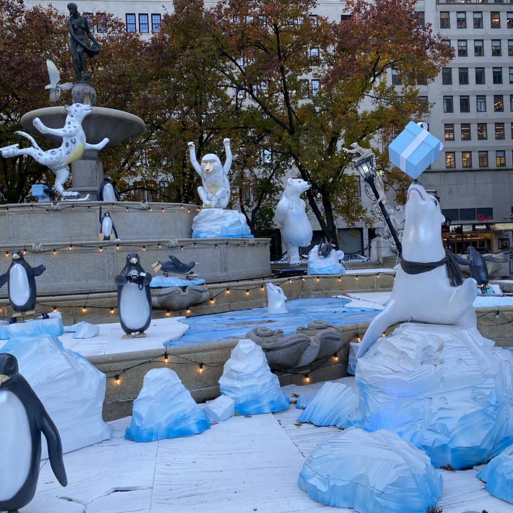 For the first time that I am aware of the Park across from the Plaza Hotel on 5th Avenue and 59th Street has an adorable animated winter display.