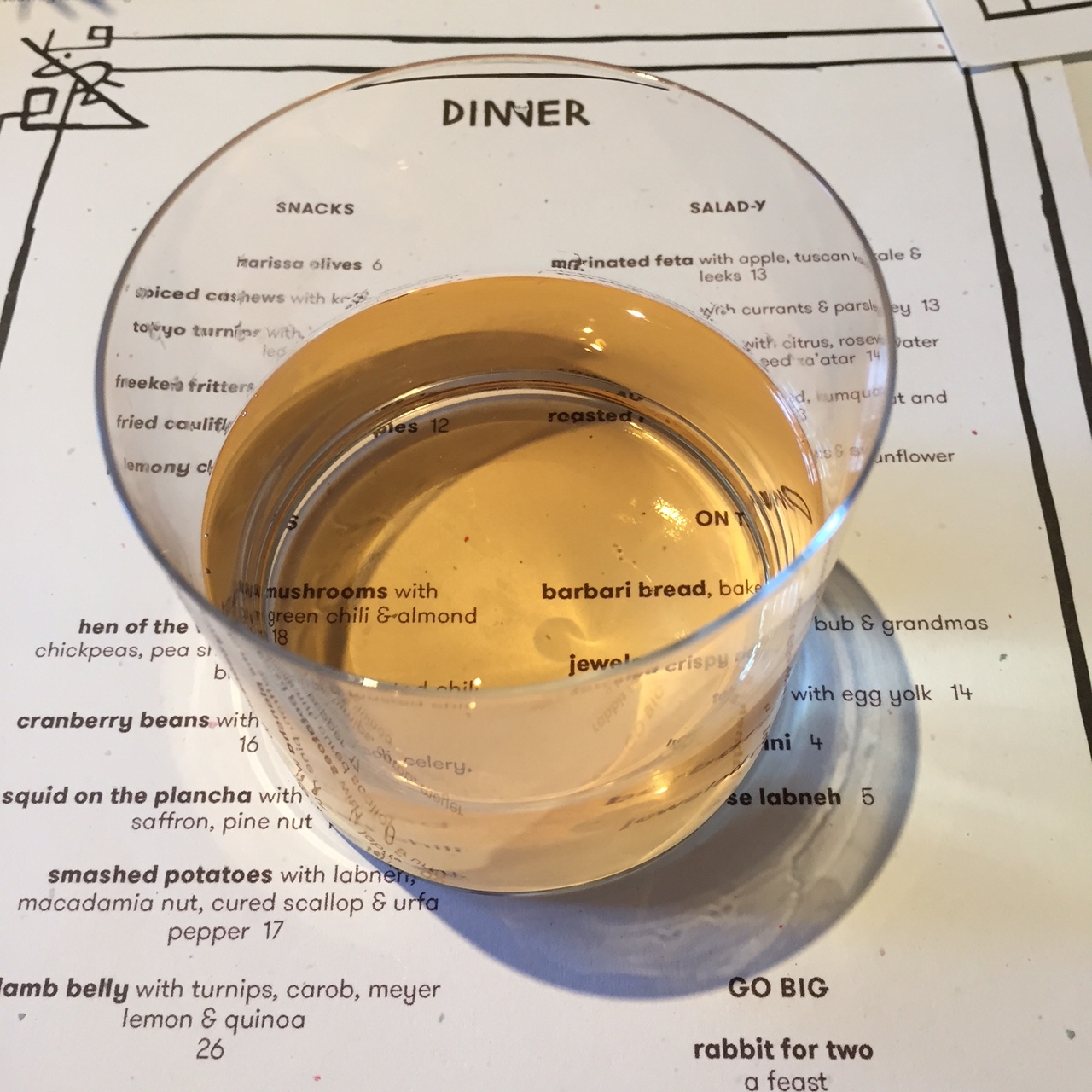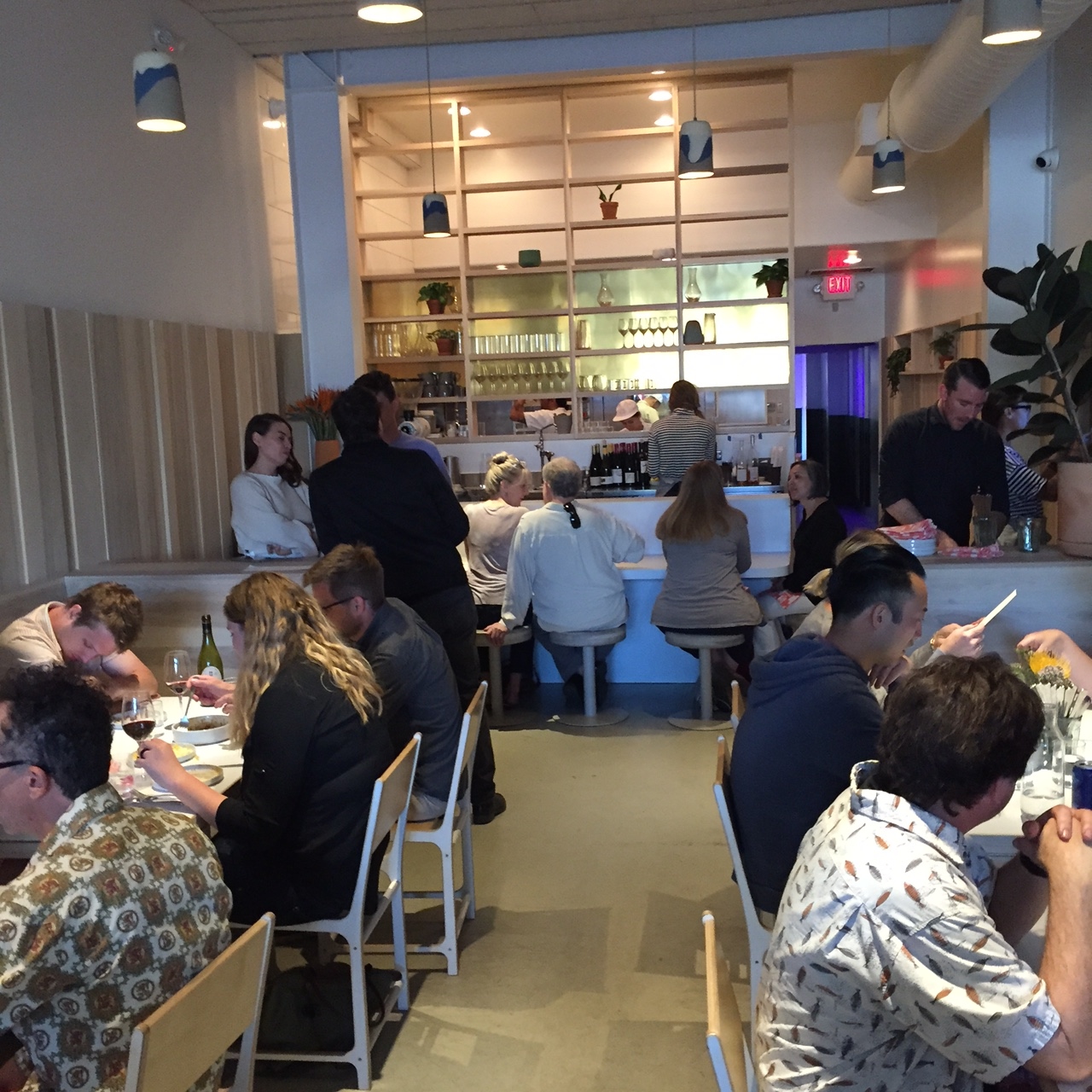 We settled in to our sleek, bleached wood table.
