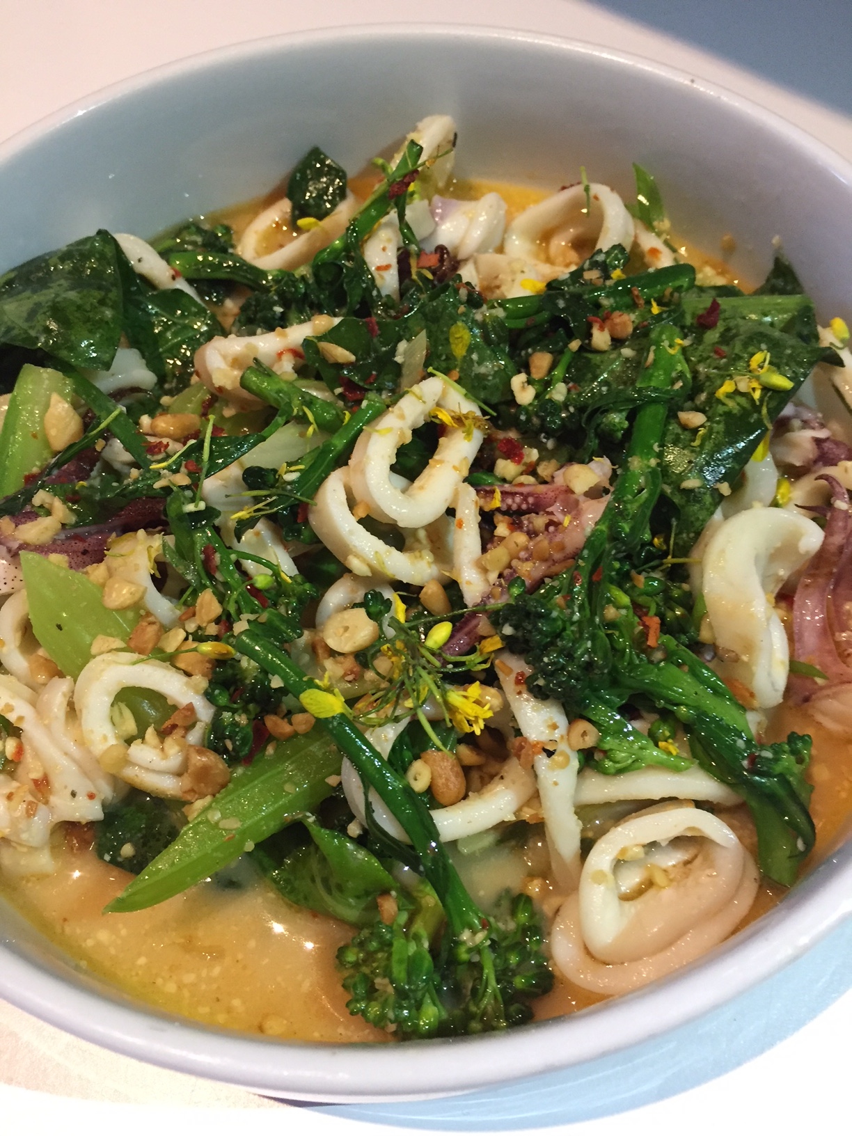 The Squid on the Plancha was not in my wheelhouse. Don’t get me wrong, it was very good, the celery crispy and the broccoli prepared perfectly. I prefer my squid chargrilled. It was excellent squid and my husband made it all gone. I picked out the veggies and was quite content.