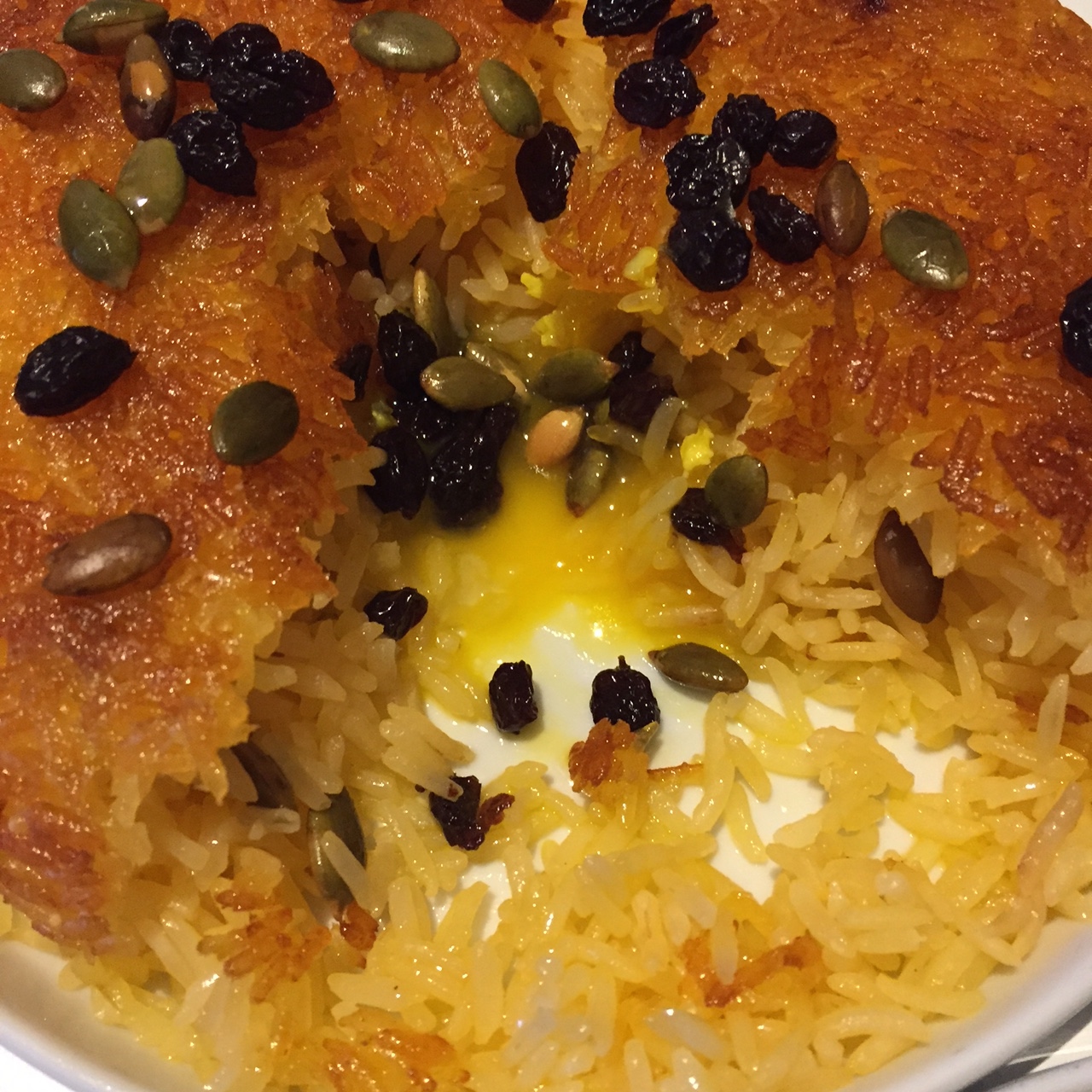 We finished things off with the Jeweled Crispy Rice which was delectable ($14). I loved the currants and nuts and the crispy texture. Surprise, inside there was an egg yolk.