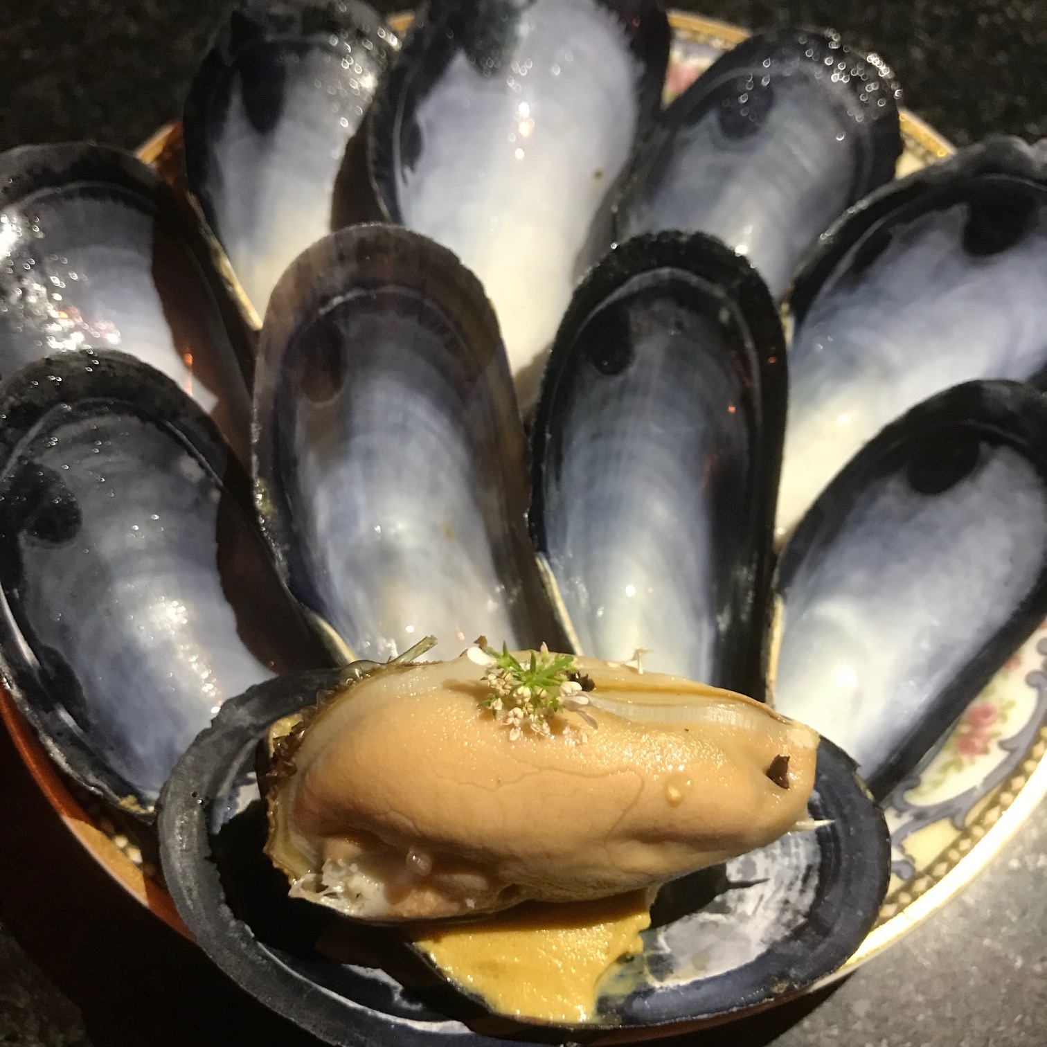 The evening kicked off with mussels and a delectable mussel ice cream that tasted like foie gras.
