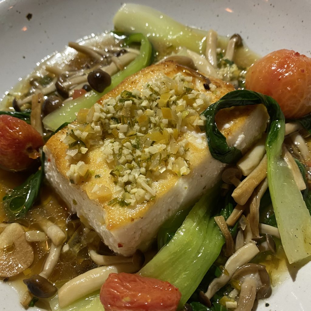 My Wild Halibut in an Asian broth with mushrooms and bok choy was superb ($48).