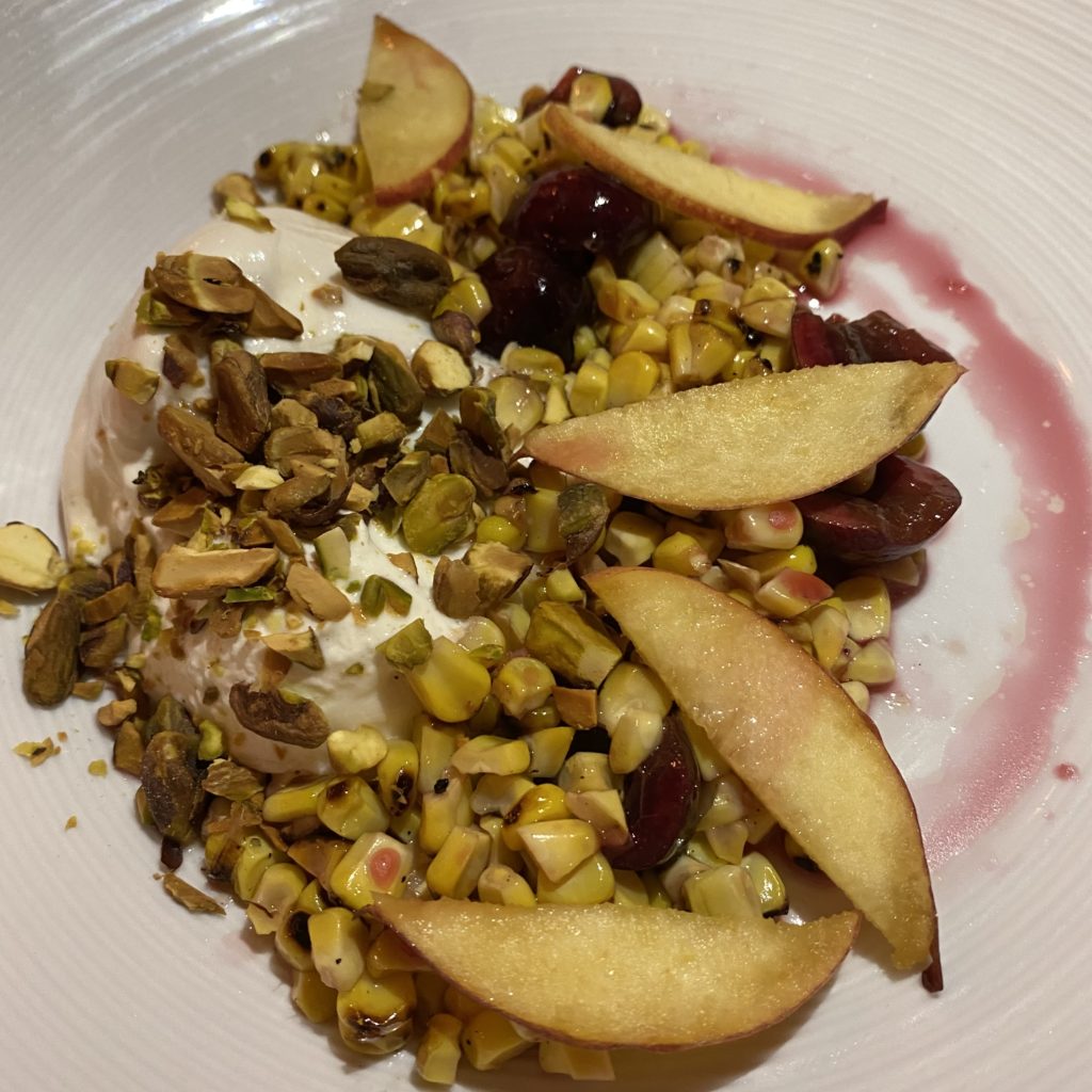 The Burrata, Fresh Corn and Peach Salad was magnificent, especially on a hot and humid evening ($29).