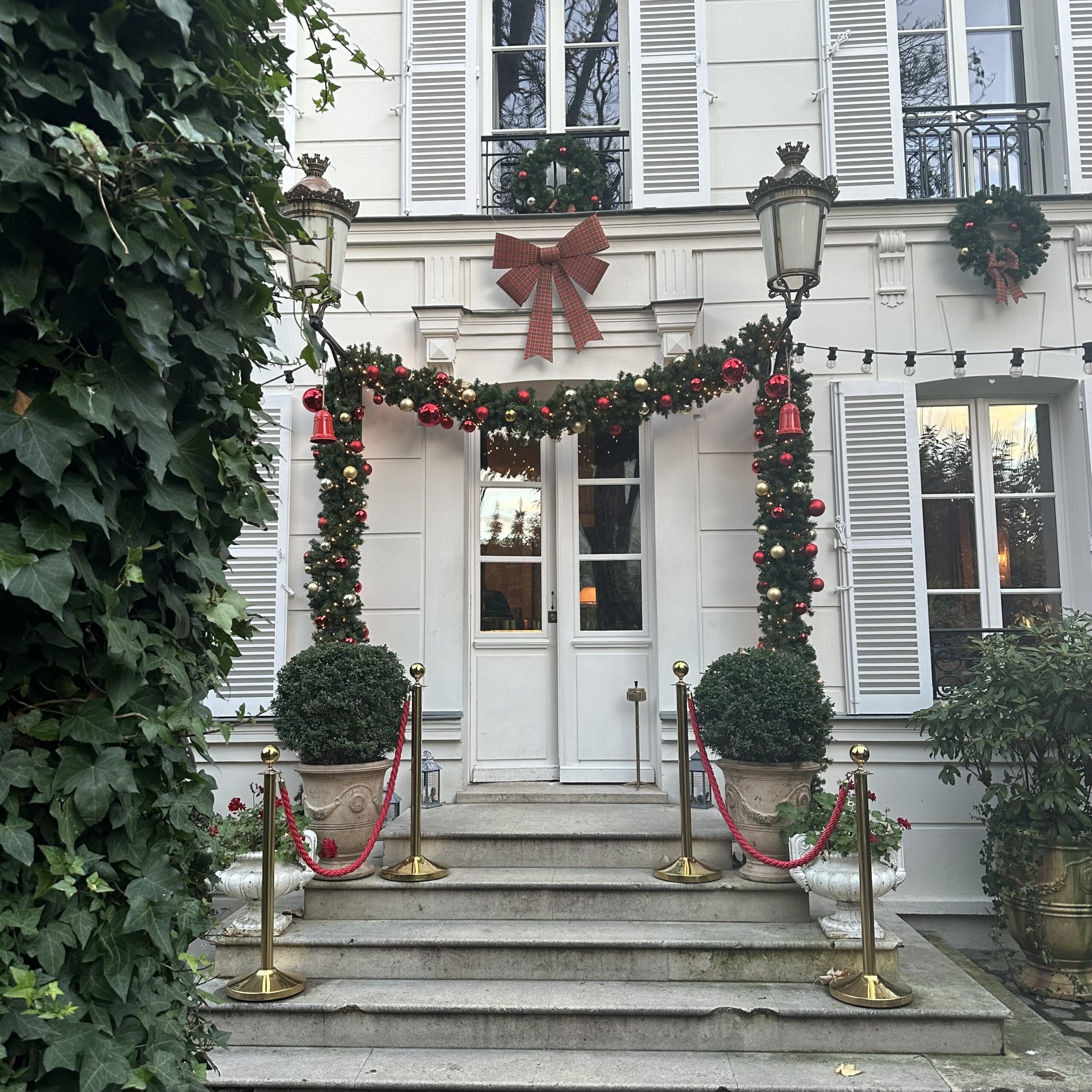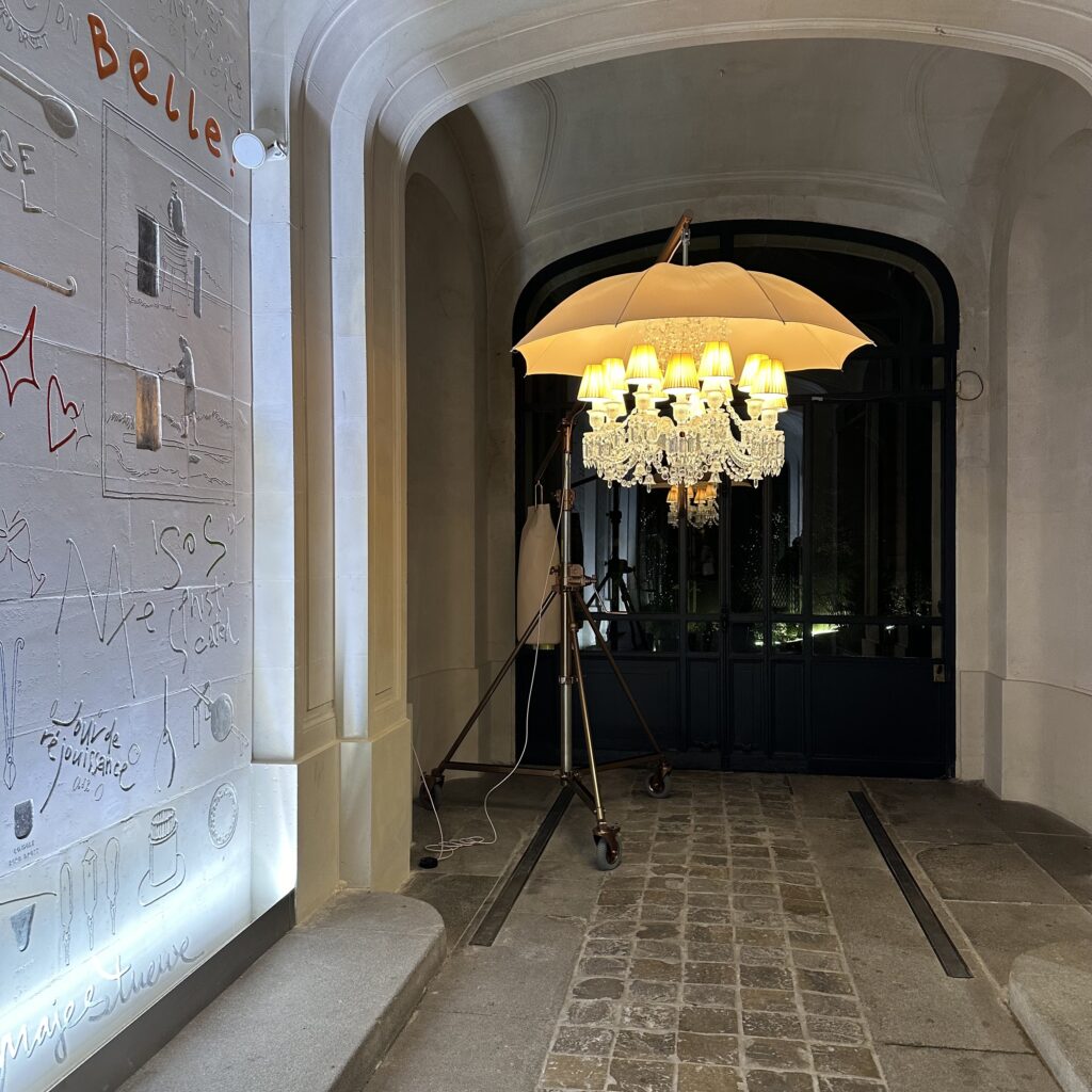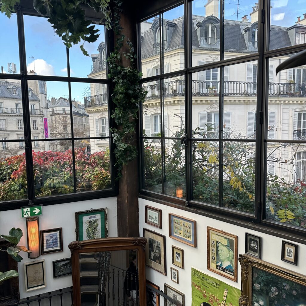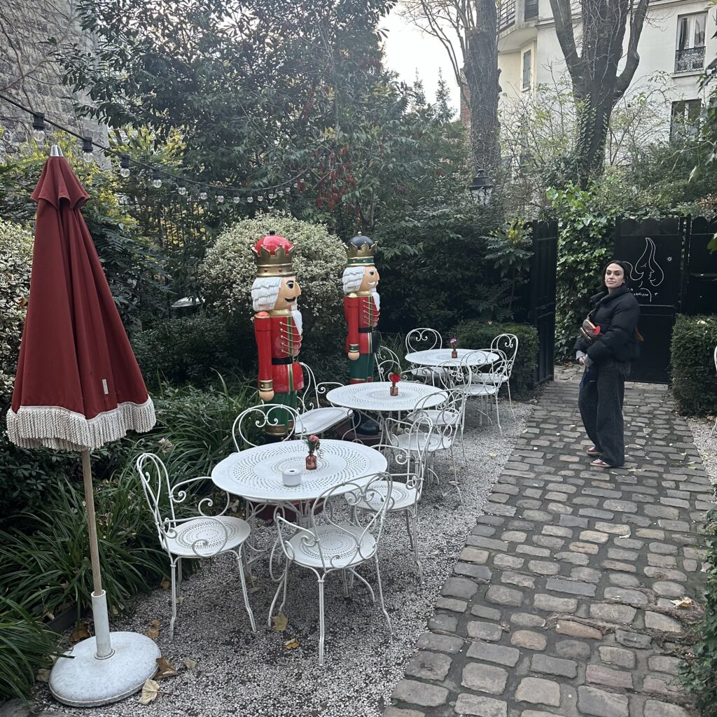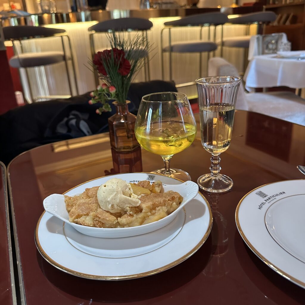 Drinks at the hidden, exclusive L’Hôtel Particulier Montmartre, more than a hotel, an authentic family home deeply rooted in Parisian history with a lush garden.