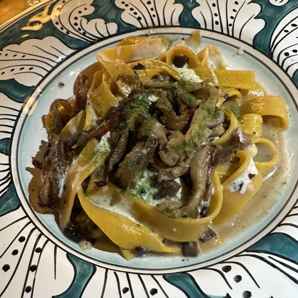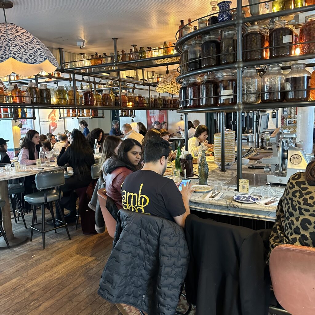 Lunching at Pink Mamma, an extremely popular restaurant in the Montmatre area. Food is fine.