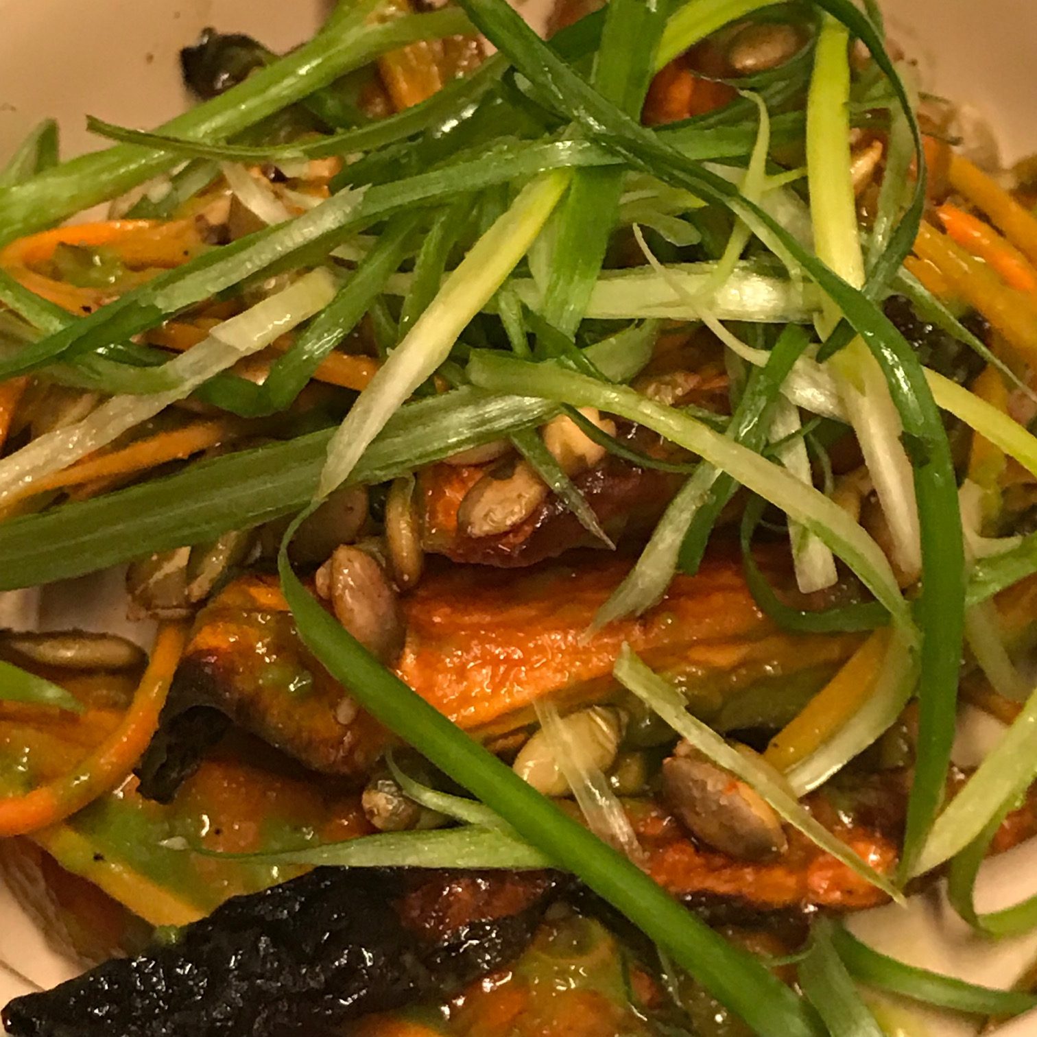 After I filled out my “golf card” menu with my pencil stub I started with the Roasted Carrots with scallion and pumpkin seed. It was served cold and was uninspired ($10).