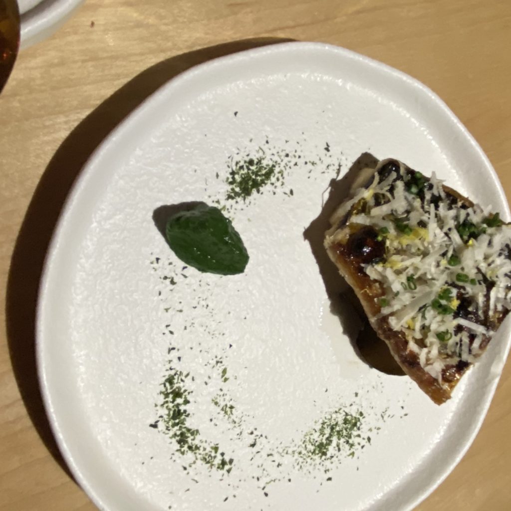 The first course, a Truffle Taco, with truffle pate, avocado, pickled radish and romaine was attractively presented and very flavorful.