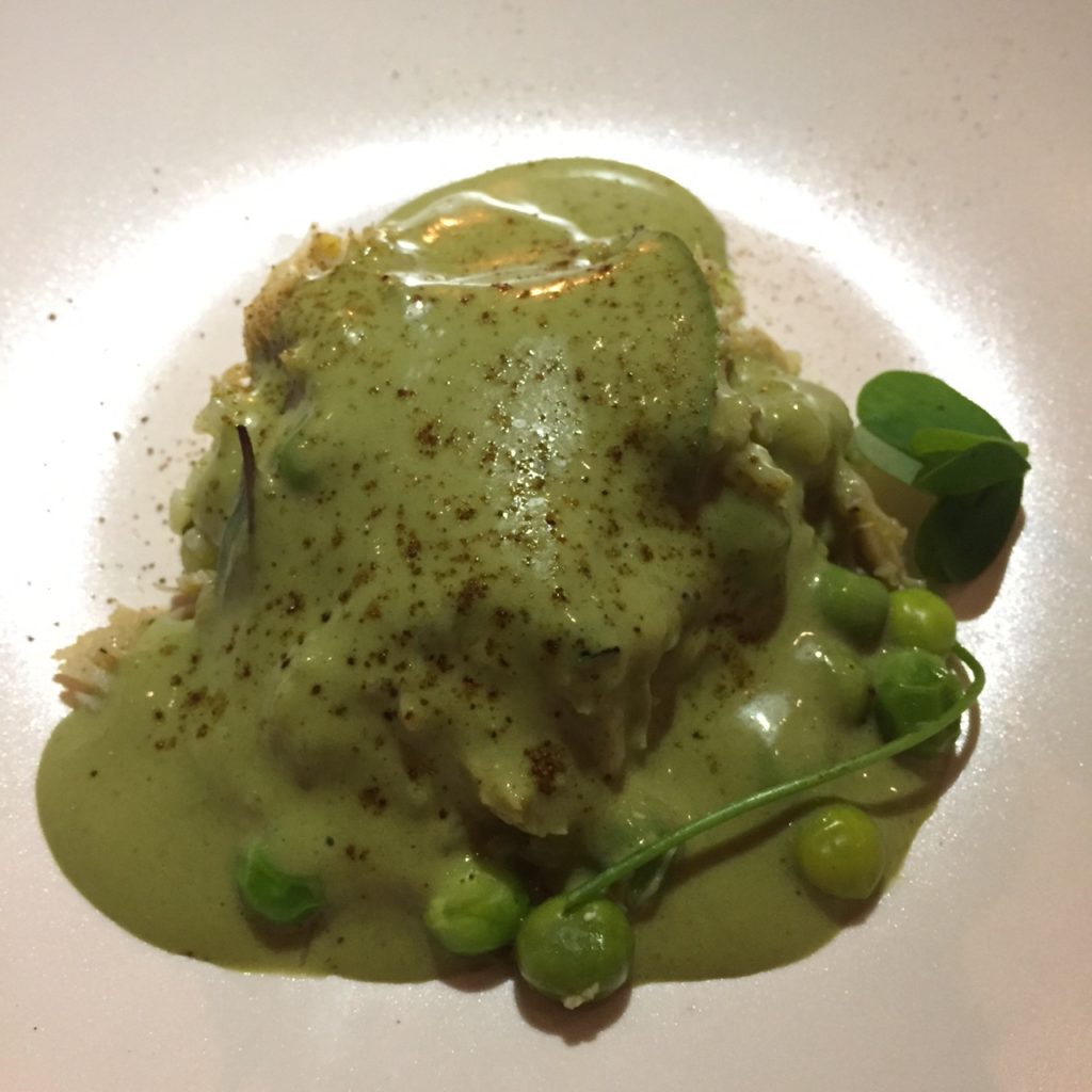 The crab over rice with coconut milk, sorrel and fresh peas was creamy and delicious.