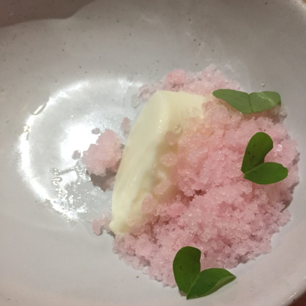 Dessert was a light and creamy buttermilk pudding with rose ice.