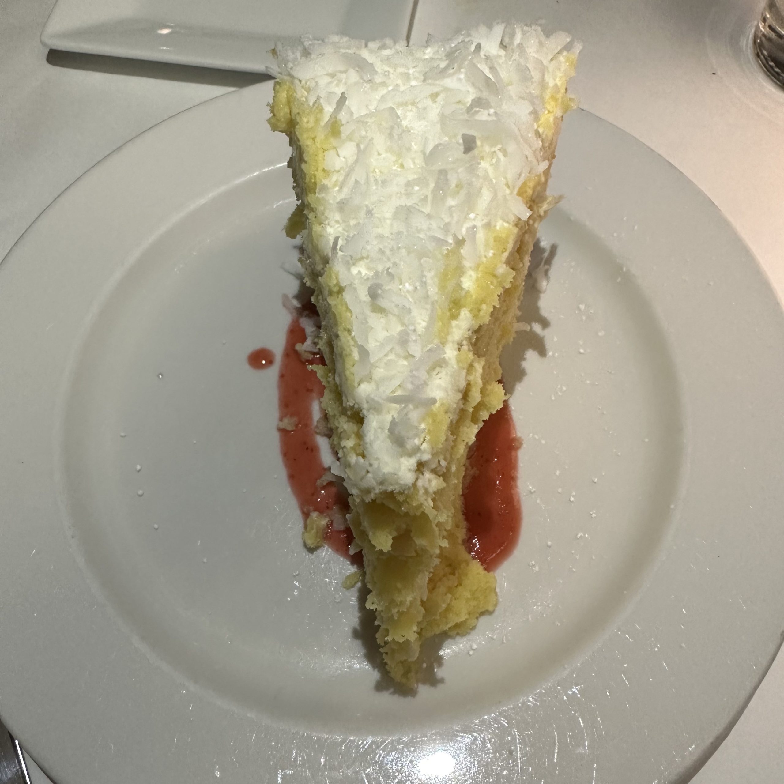 Initially not interested in dessert our server sang the praises of the Coconut Cake. I must admit to being a coconut cake virgin. Well, I am delighted to say I no longer am and are happier for it.