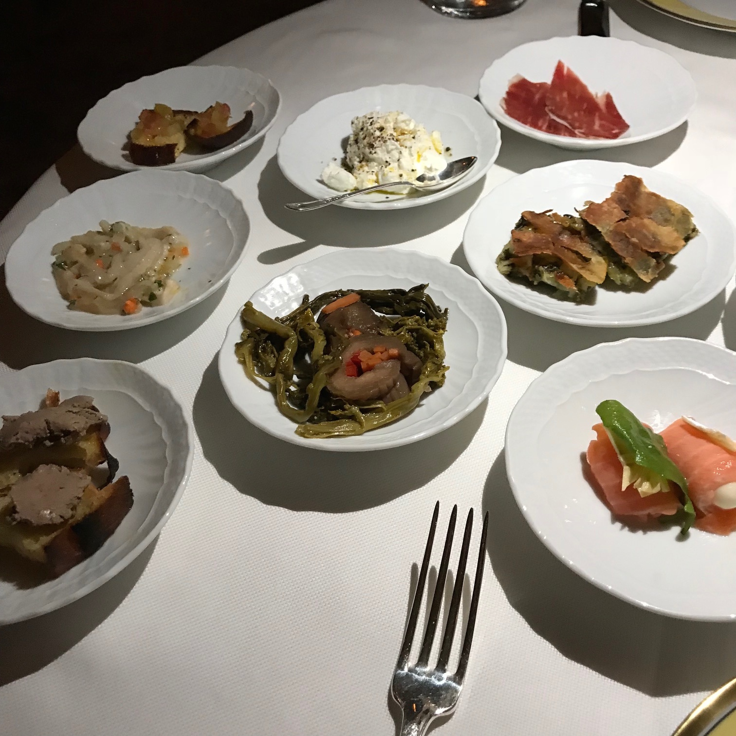 We started with Assaggini Abbondanti, an array of appetizers and not one was very appealing.