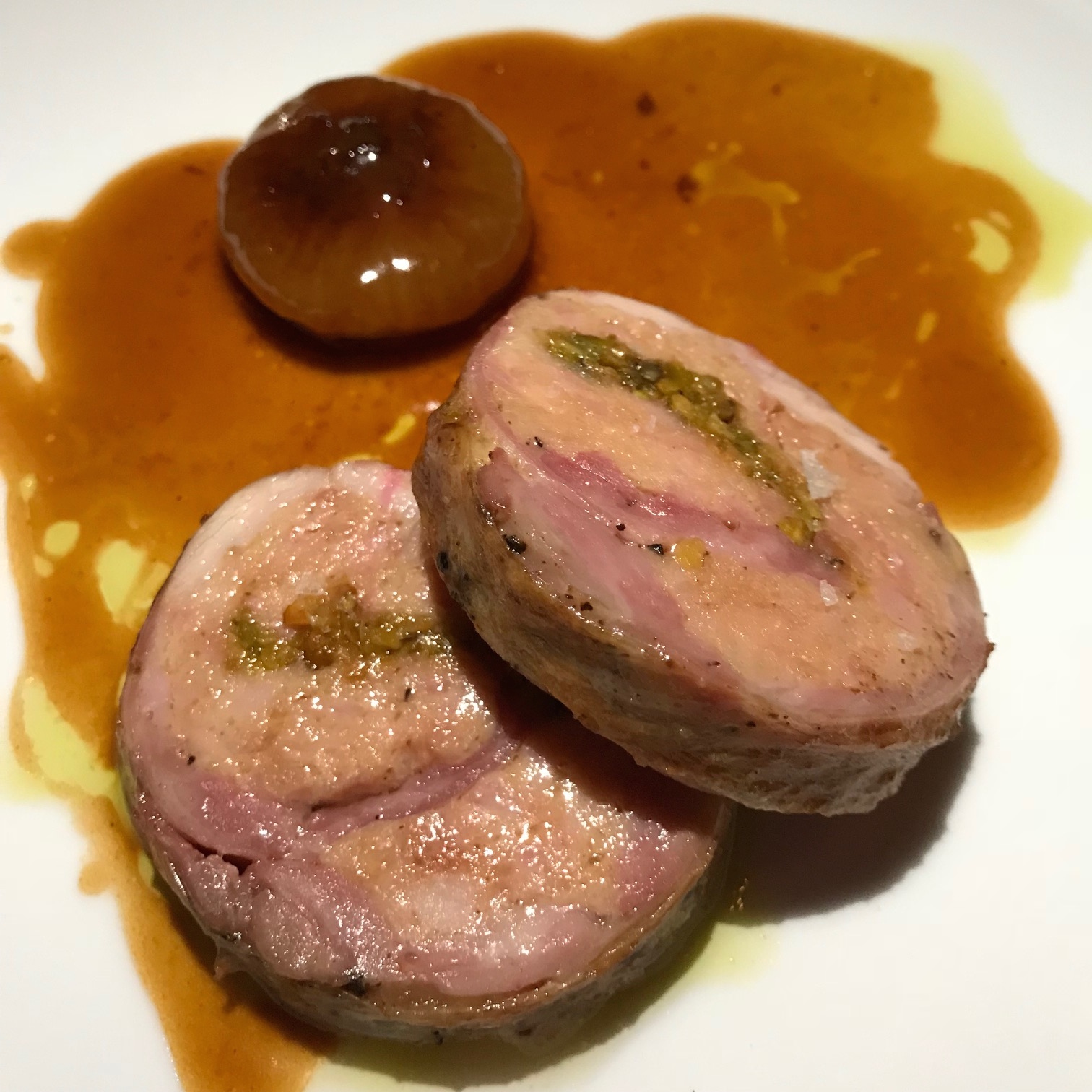 Stuffed Rabbit with caramelized cipollini and pistachio ($36).
