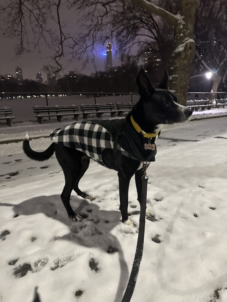 I had a doctor’s appointment on the way, way upper east side and walked the 30 blocks up and almost a mile across Central Park enveloped by the virgin snow and a few ecstatic off leash doggies.