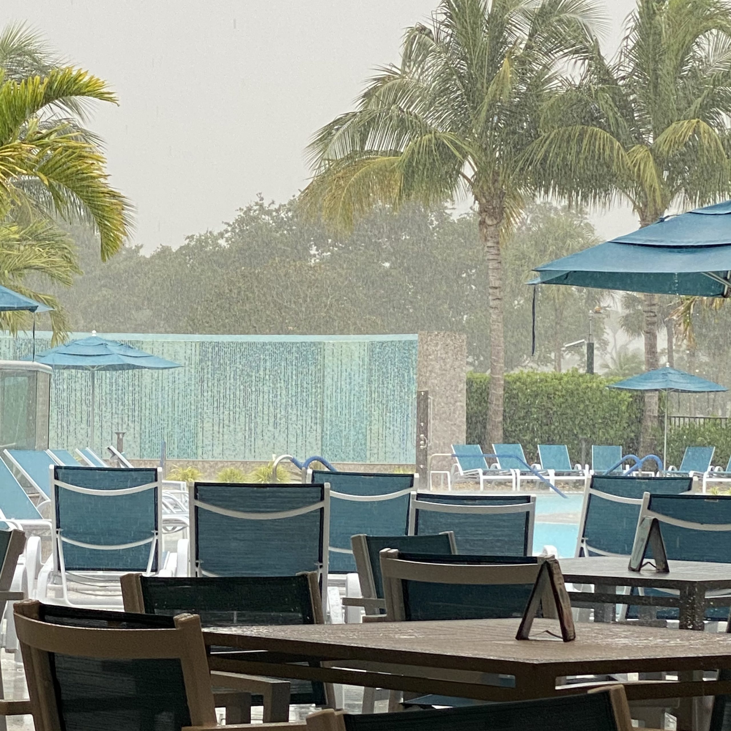 I was walking back from the gym after waiting out the deluge and then the storm re-ignited and I had to take shelter in a tiny storage hut.