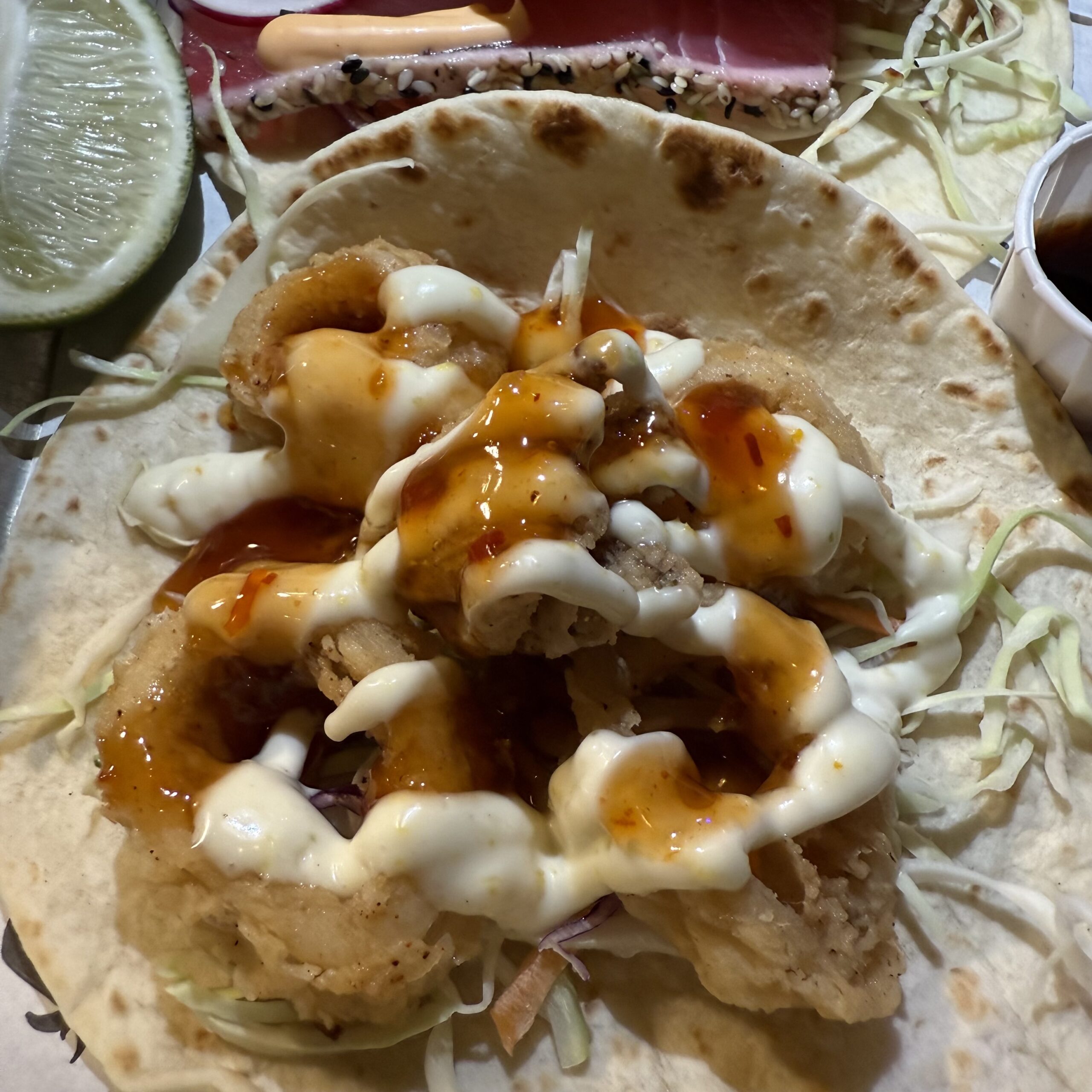 My partner in life ordered the Ahi Tuna and Calamari tacos, two very different creatures, both equally knockout.