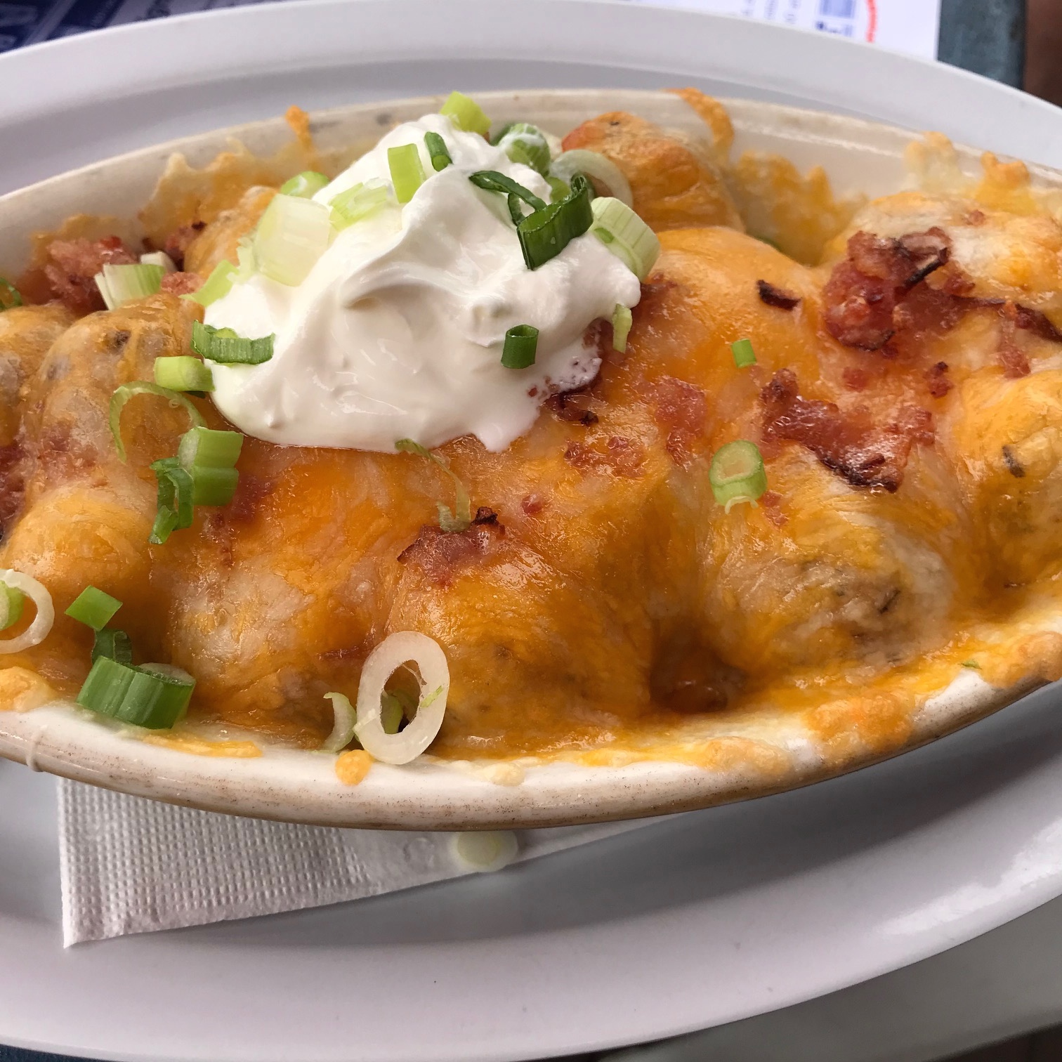 David ordered stuffed potatoes which were boiled potatoes with melted cheese, sour cream and chives…interesting, but not that appealing.