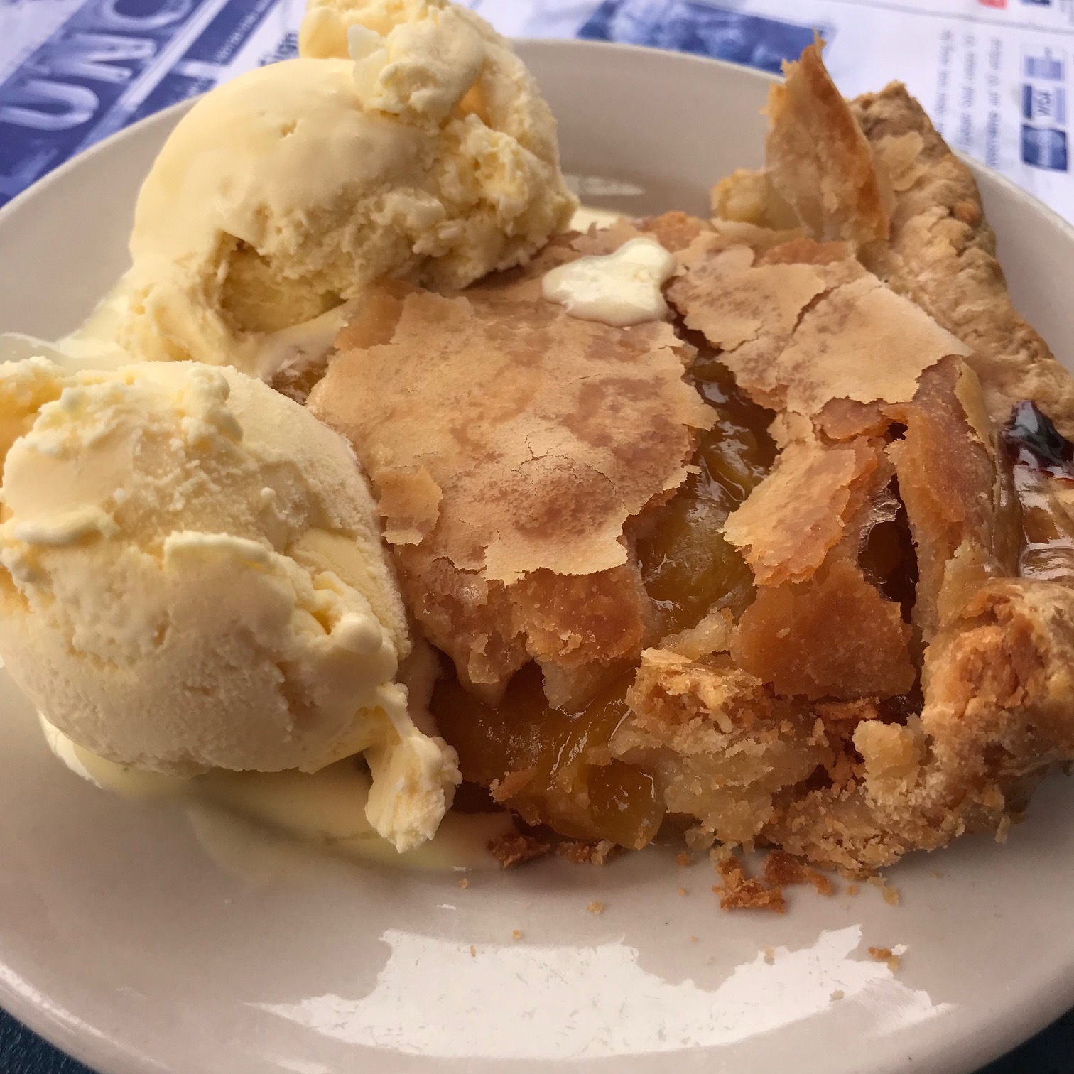 The homemade peach pie ($6.95) appealed to David and he indulged with a scoop of vanilla ice cream ($3.50).