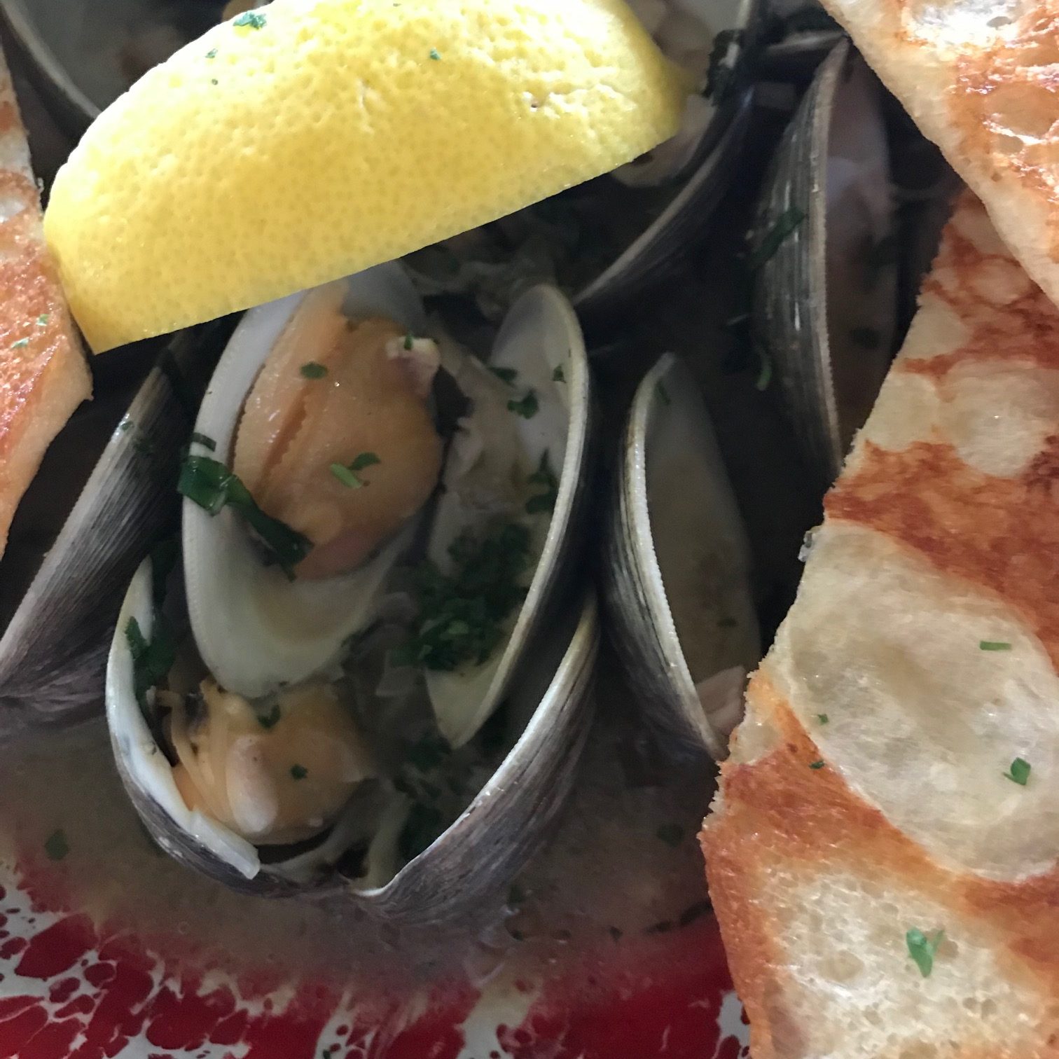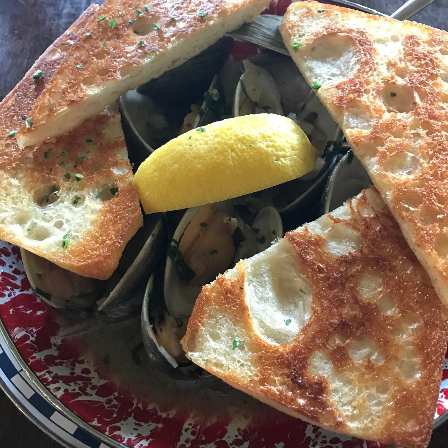 We started with the beyond fresh sautéed Littleneck steamers ($19). They were huge, sweet, plump and addictive. The accompanying daily prepared garlic bread was heavenly…crisp, flavorful and perfect for dunking.