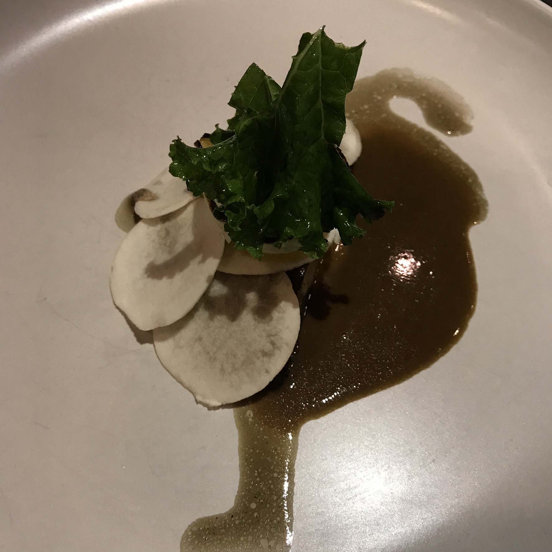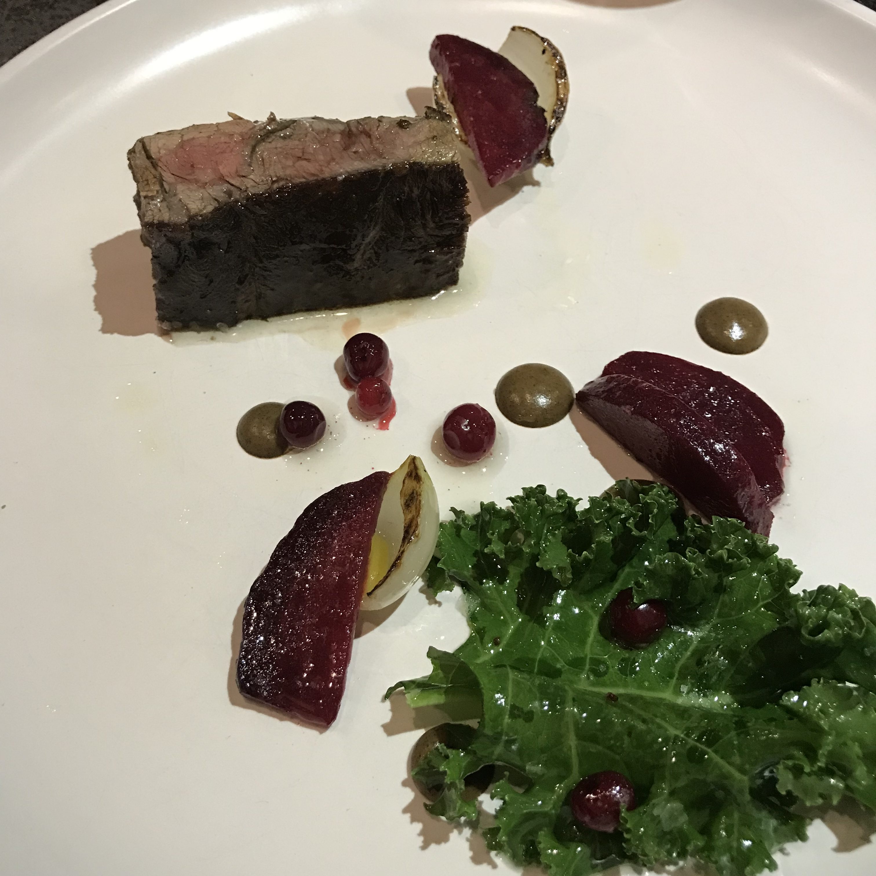 For the pescatarian, a Portobello with black garlic demi, kale and yolk custard was served in place of the beef dish.