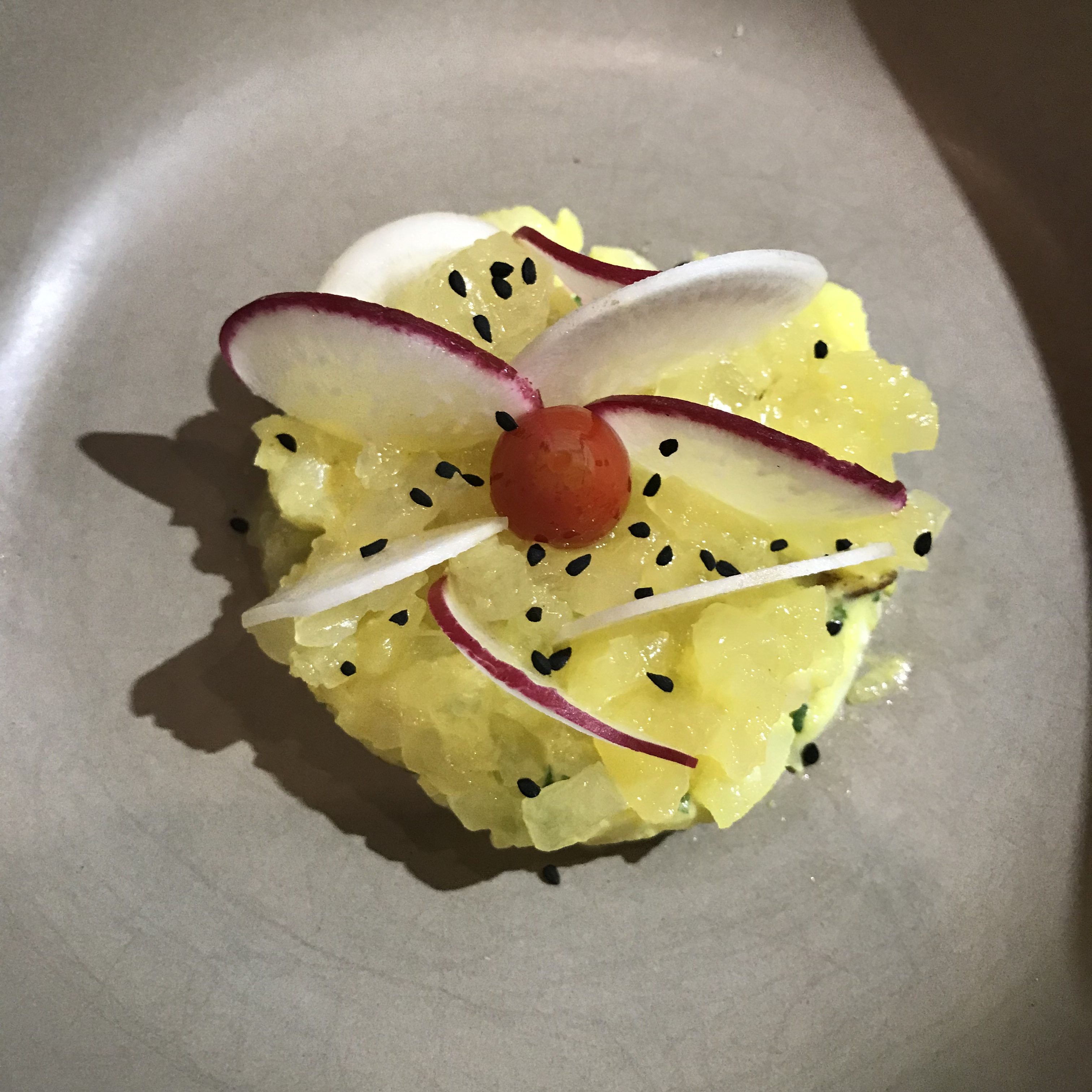 Before settling in, I asked if we could sit at the chef’s bar and enjoy the five-course $68 set menu, featuring modern global cuisine.