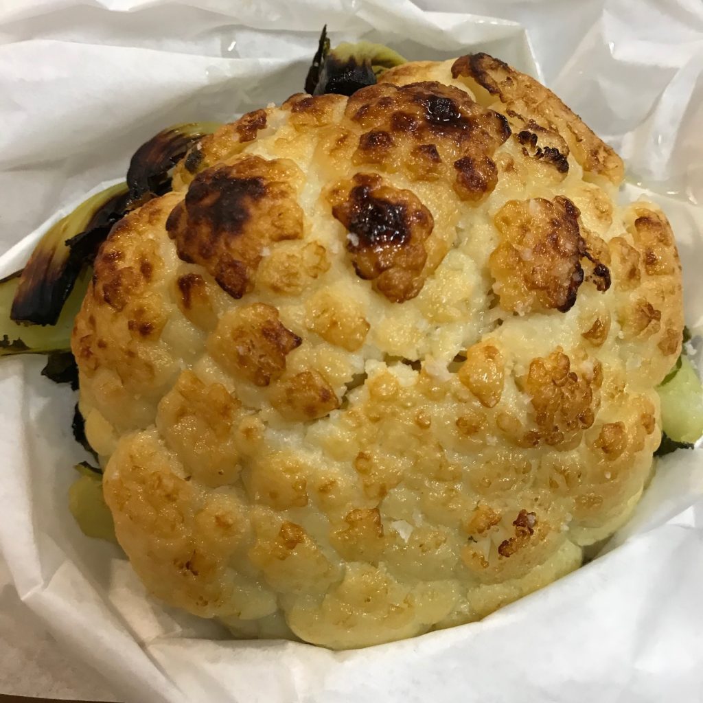 The cauliflower is amazing, prepared just right. It is a full head so plenty to share.