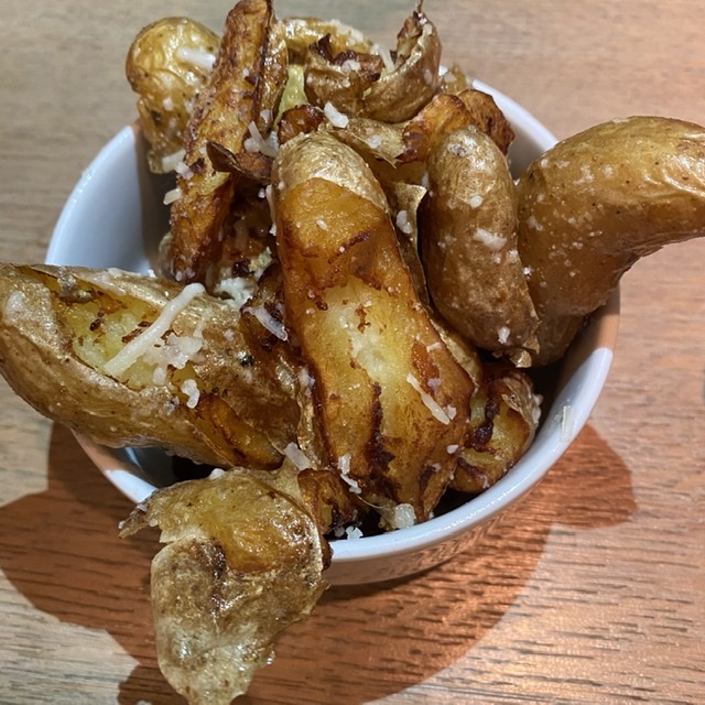 We selected two sides. The crispy parmigiano potatoes were mouthwatering and served piping hot ($8).