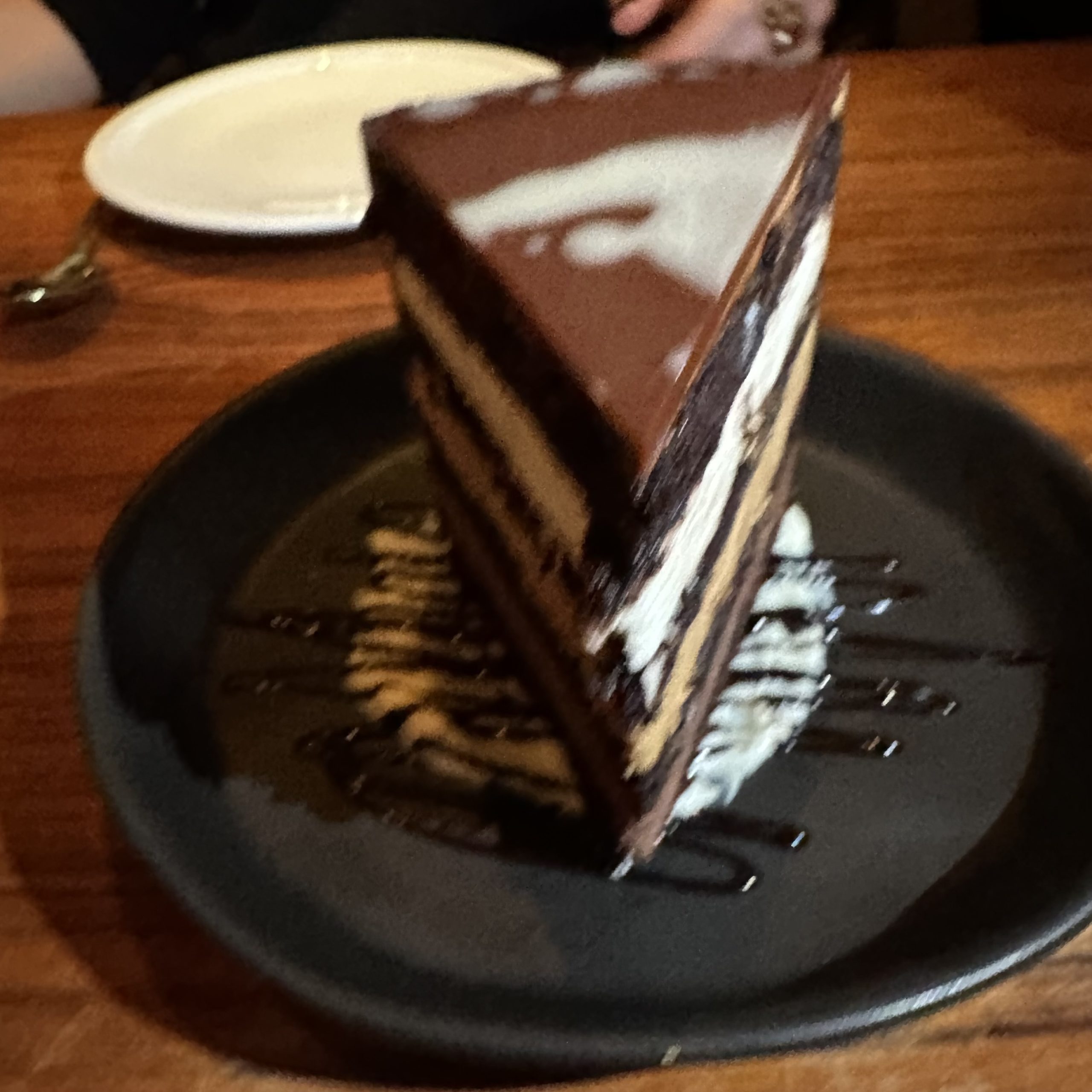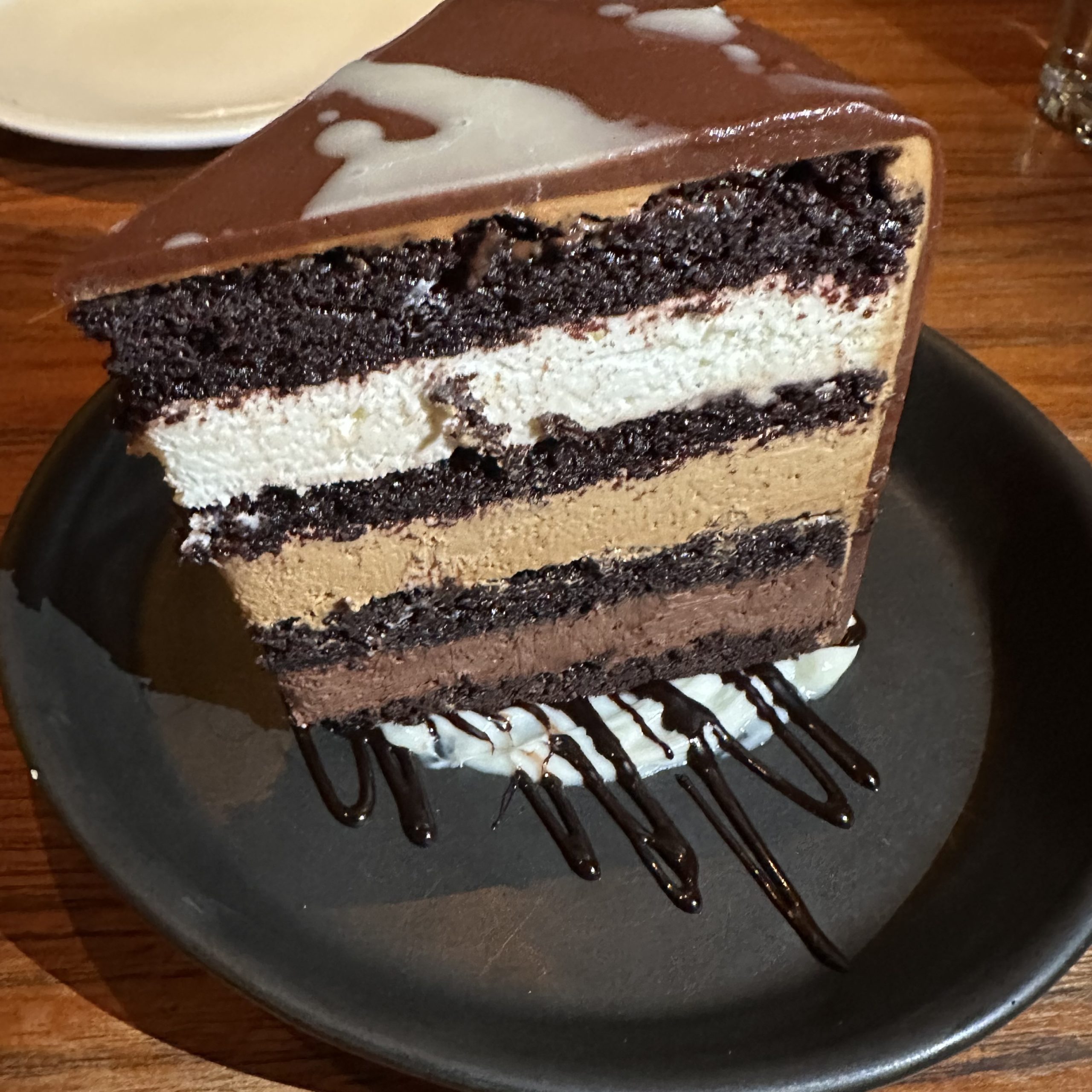 We ordered dessert, a rarity. I think the Chocolate Cake with white & dark chocolate and caramel was the best ever and in my mind the cake was up against my Aunt Mollie’s homemade dark chocolate 8 layer cake. This one won ($16).