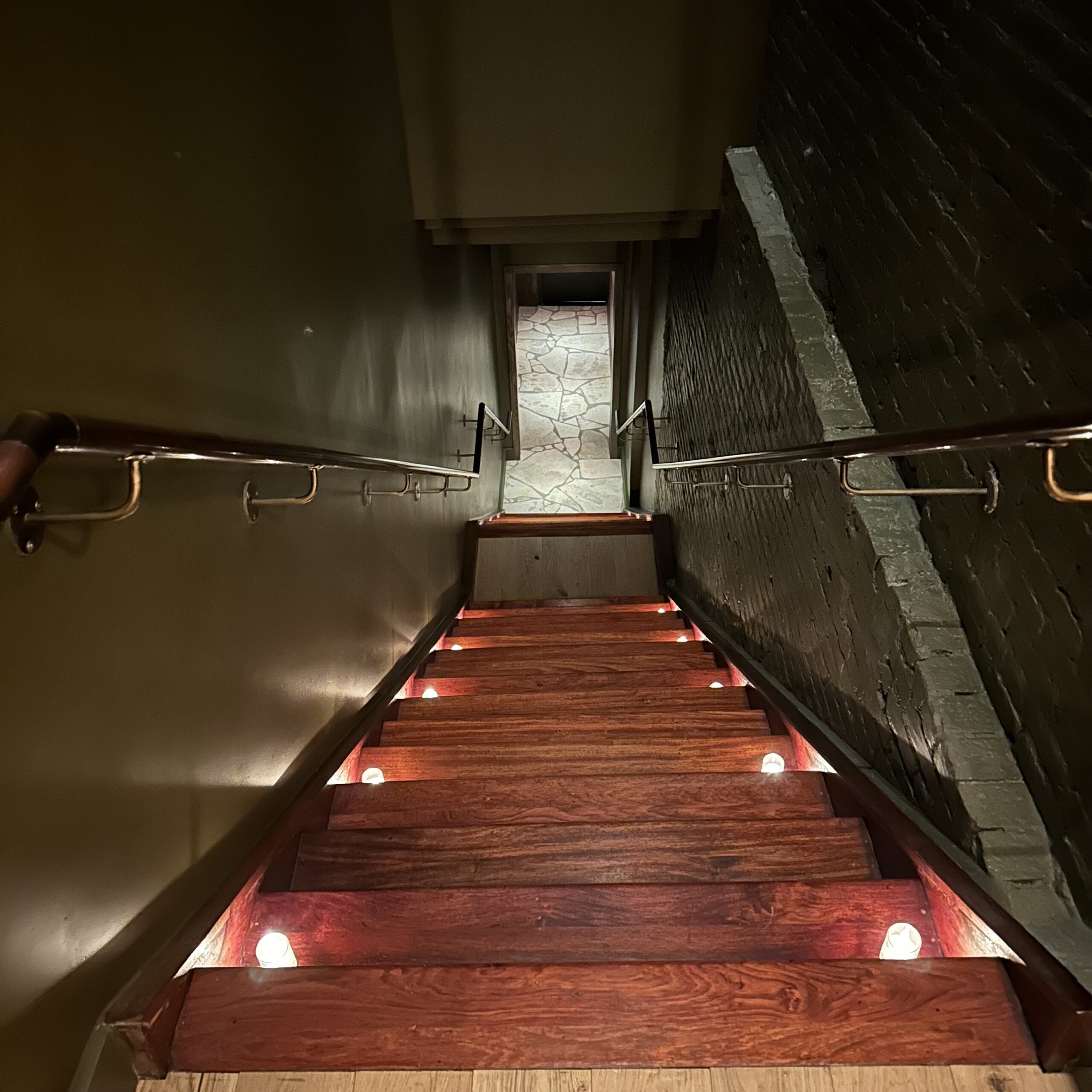 The Flatiron building is decorated subtlely with green accented decor, stone and wood floors and intimate lighting.
