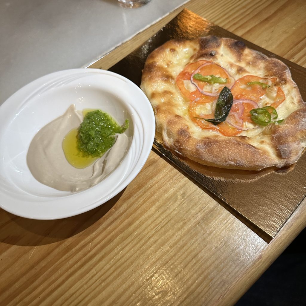 We kicked things off with the individually prepared Golden Focaccia marbled with tomatoes, onions and spicy peppers which I omitted. It was very good and arrived with a small side of Tahini ($10).