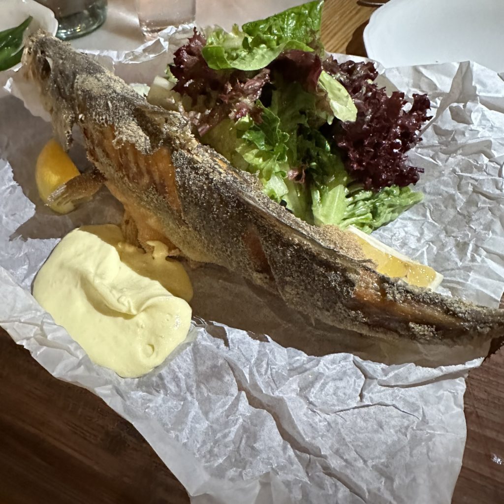 Our main was the overhyped Golden Sculpture, a small whole deep fried Branzino. It was bony and a bit bland ($37).
