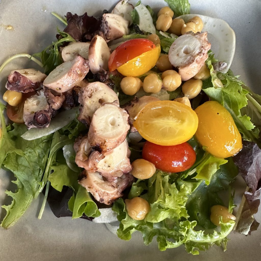 My husband went with the Grilled Octopus Salad with chickpeas, tomatoes, mix greens and fennel salad, dressed with a lemon vinaigrette ($18).