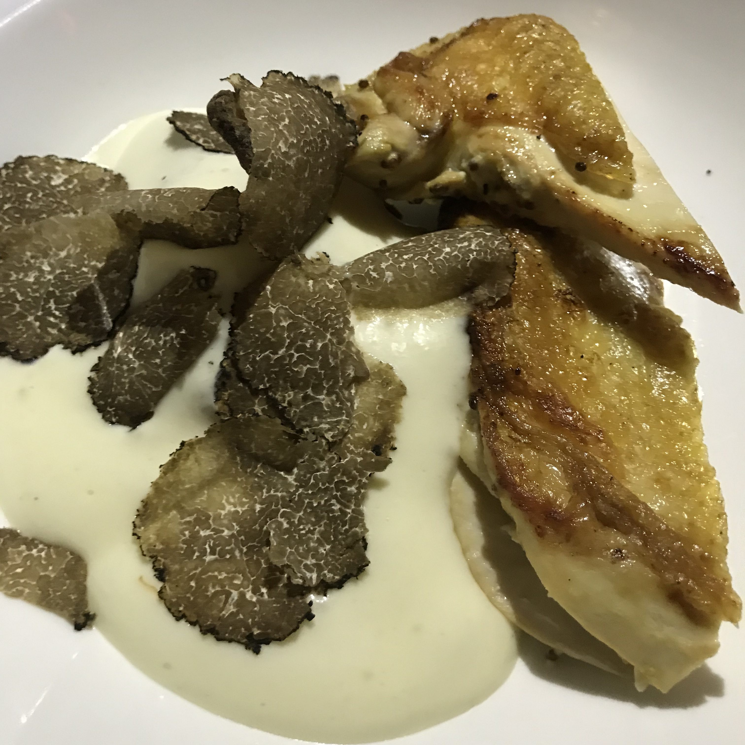 The crispy, delectable very French Chicken Roti with hand shaved Burgundy Truffles, sunchokes, chanterelles, Comte and rosemary was memorable ($34).