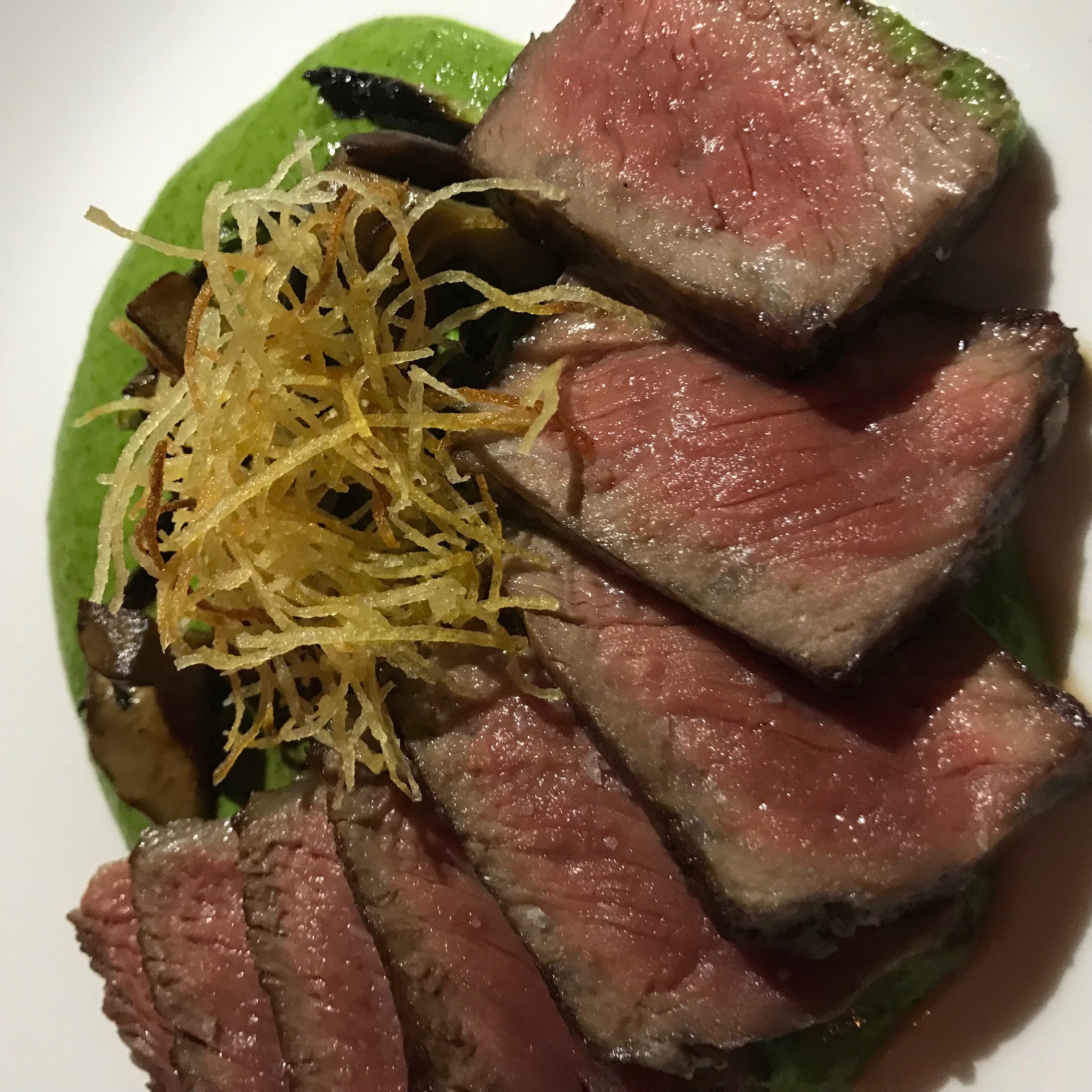 The outstanding grilled N.Y. Strip Steak was perfectly prepared served with arugula, spring onion, lobster mushrooms and crispy potato ($38).