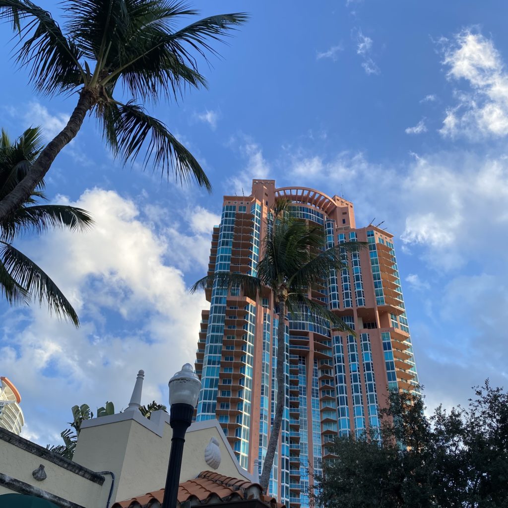 We drove home on Collins Avenue all the way to Aventura. There was a crash on 95 so we cruised down memory lane on local byways and I pointed out the hotels I stayed in college jam packed with 6 to 8 girls per room. We reminisced about our family favorite Rascal House which no longer stands in Hollywood and highlights from hangin’ at Bal Harbour Mall.