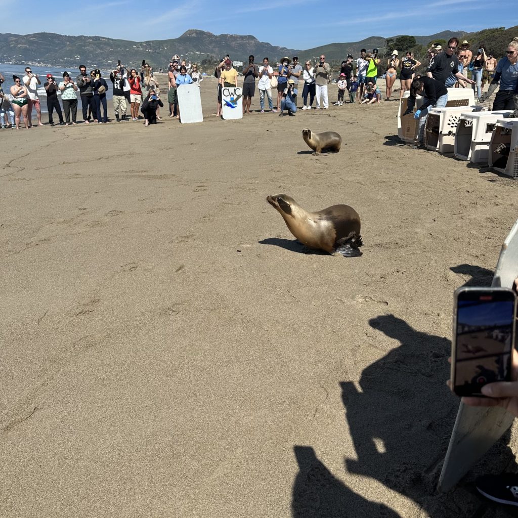 We were instructed to leave a wide path so when the sea lions were released their view would be of the ocean and, hopefully, they would all waddle back to their home of origin.