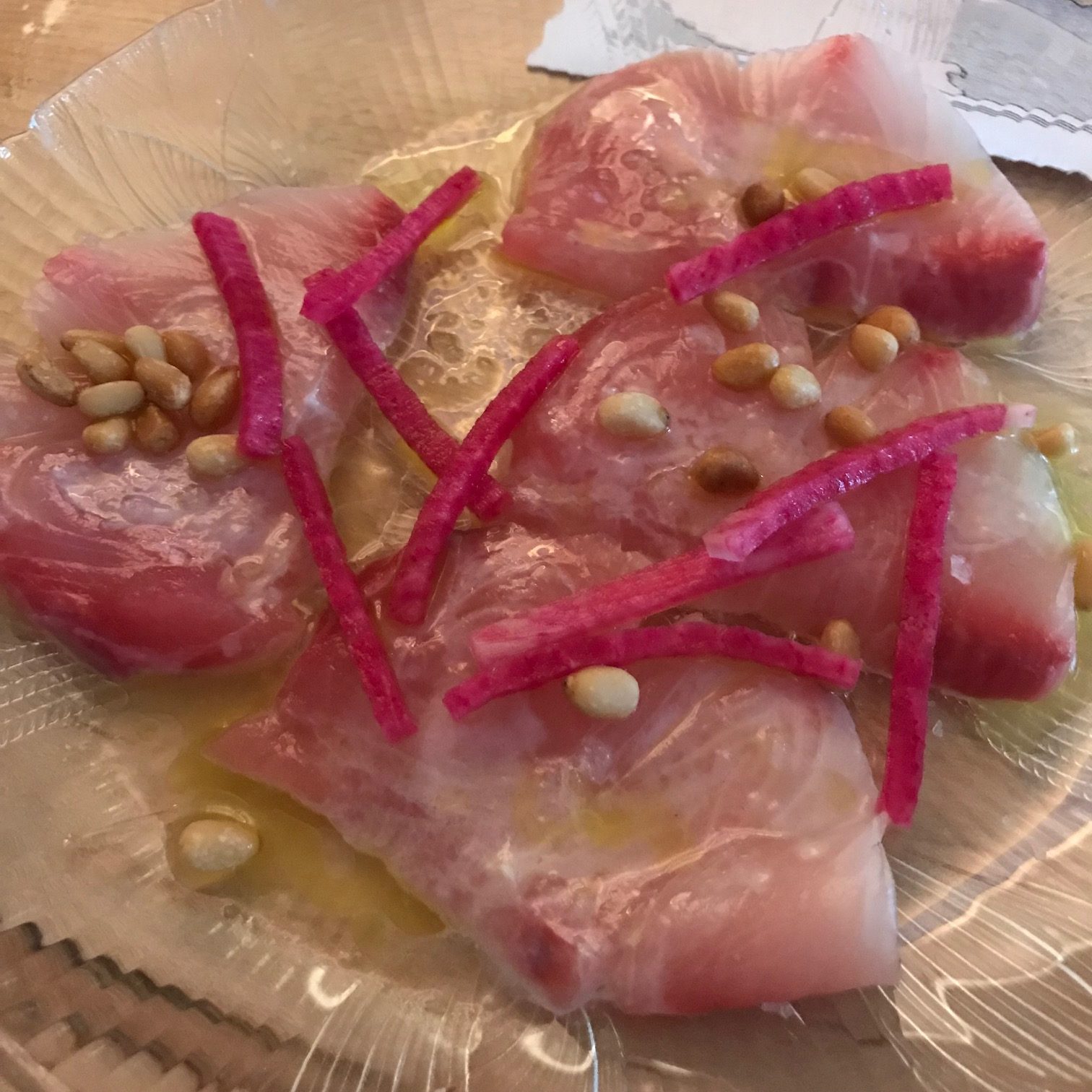 This was followed by a generous serving of superb Hamachi accompanied by a medium bodied white with citrus notes, Ciro Picariello Fiano di Avellino 2018.