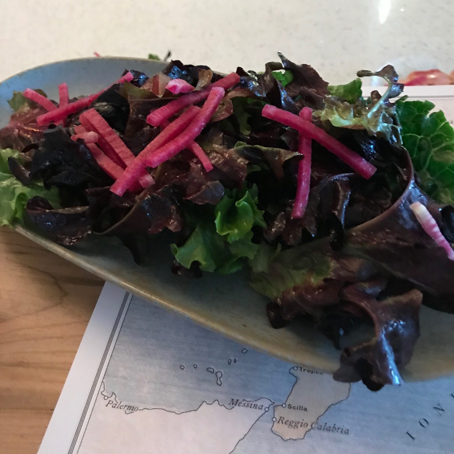The next course was a lovely salad and an elegant red 2014 Cantina Giardino Aglianico Drogone.