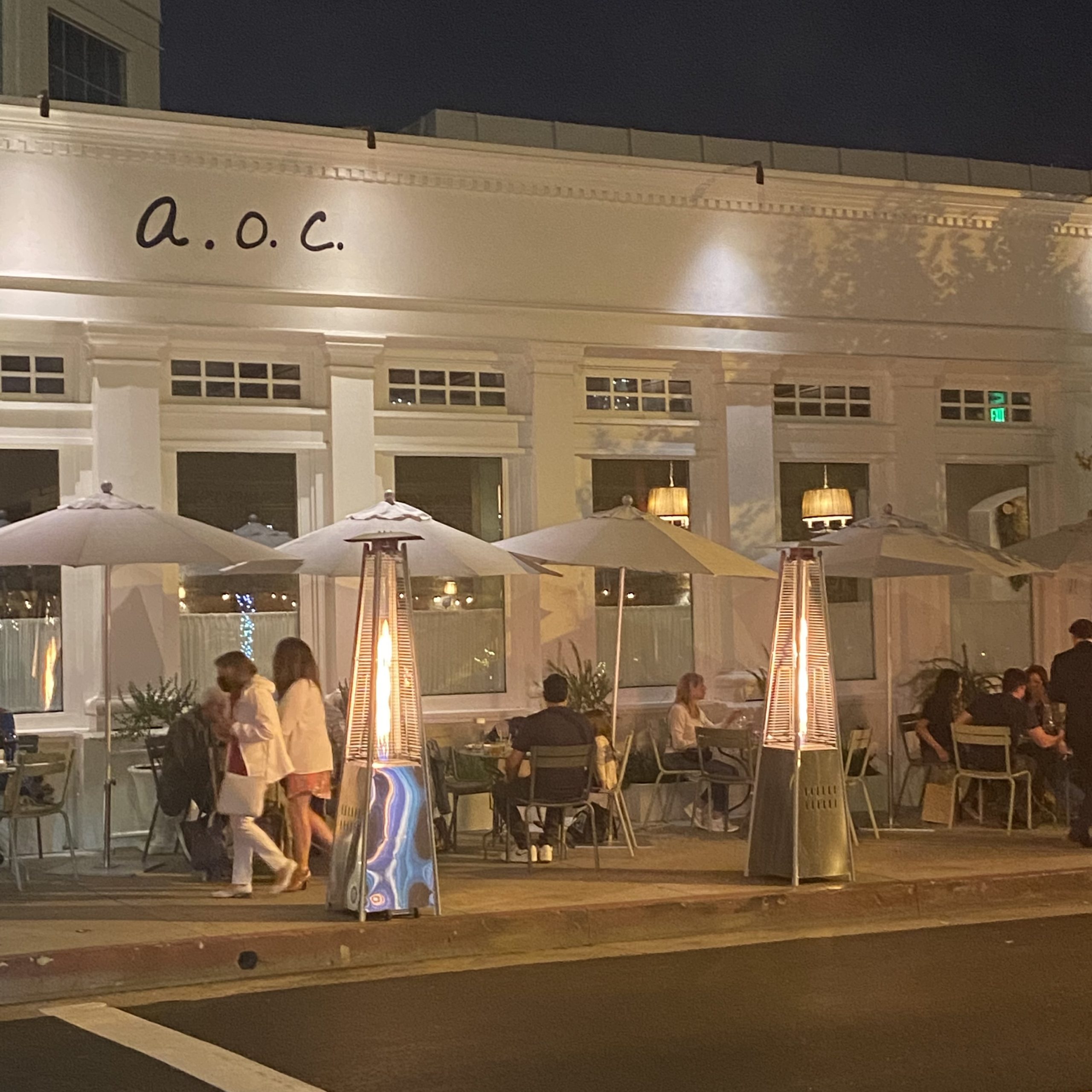 A.O.C. 11648 San Vincente Boulevard Brentwood, California. Open Tuesday-Thursday and Sunday 5-10pm, Friday and Saturday 5-11pm. Brunch Saturday and Sunday 10am-2:30pm. Valet and street parking. Reservations on OpenTable.com.